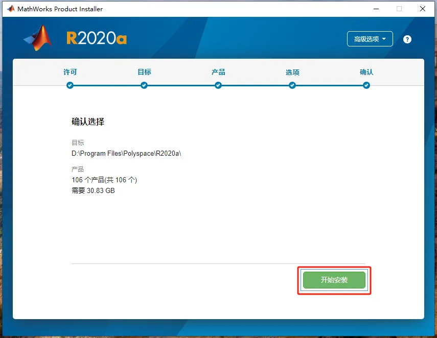 第十四步:点【开始安装】,注意安装位置一定要保留足够的安装空间。
