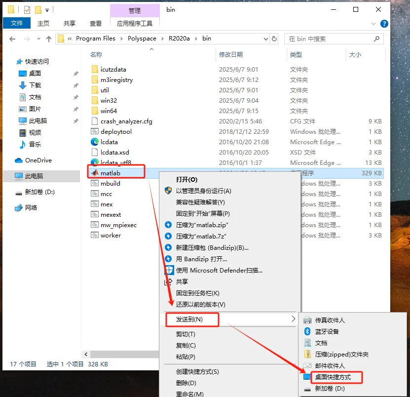 第二十二步:在此目录下,选中matlab,右击【发送到】【桌面快捷方式】。