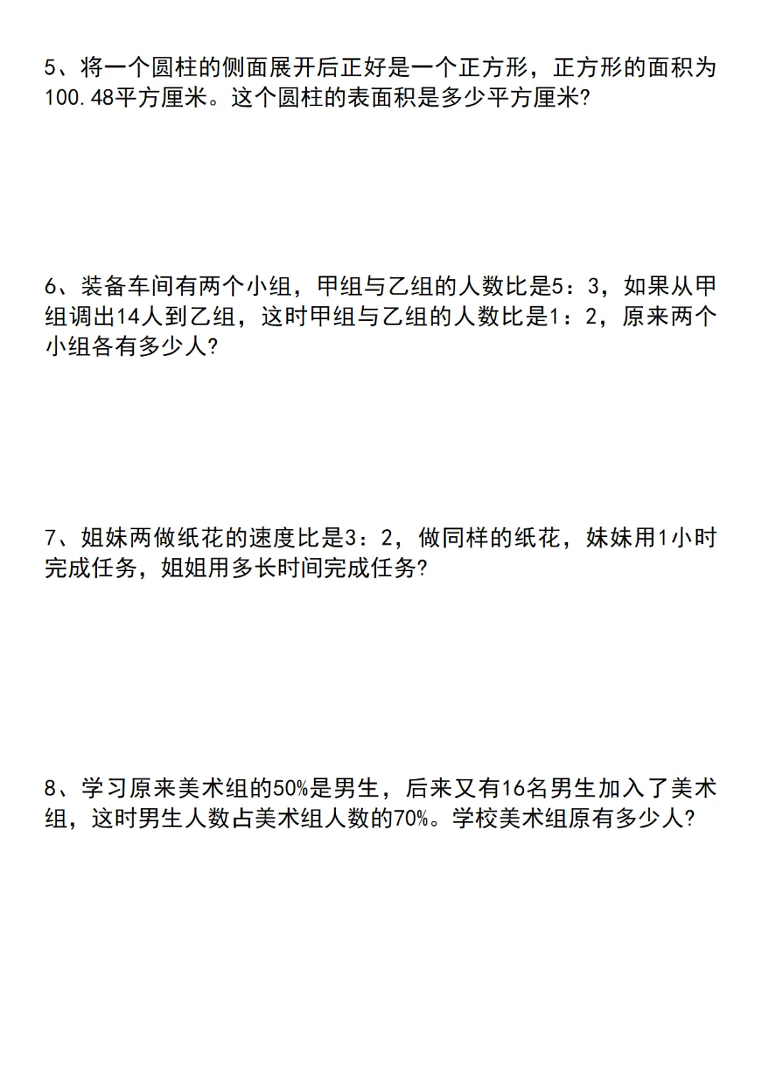 【免费下载】六年级(下)数学 小升初专项拔尖应用题,PDF电子版,可打印