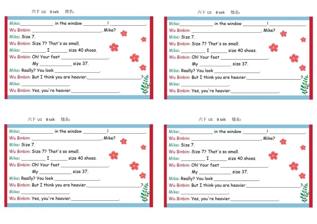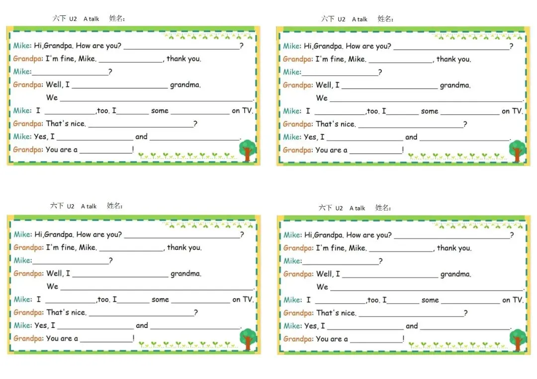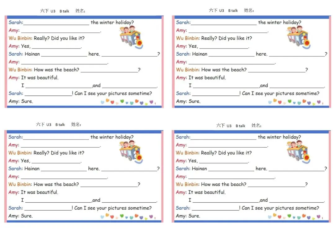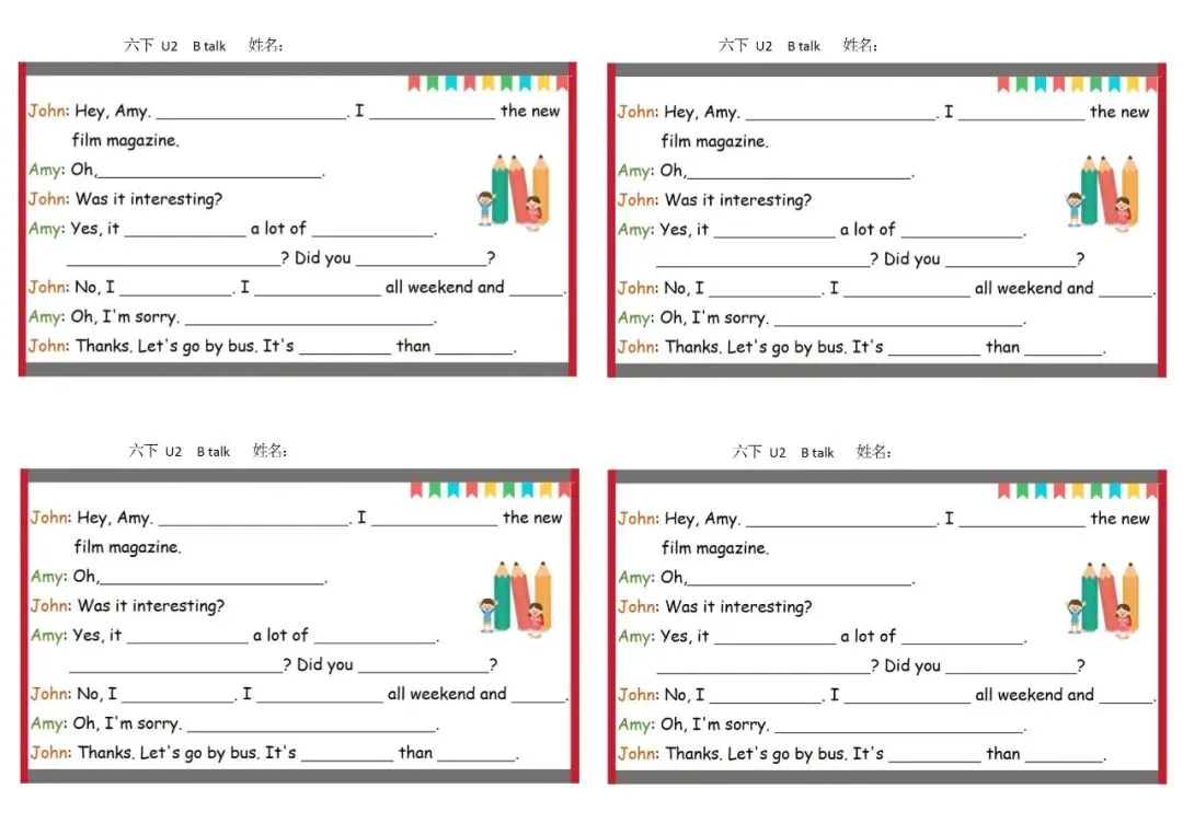六年级英语下册彩色默写单 免费下载