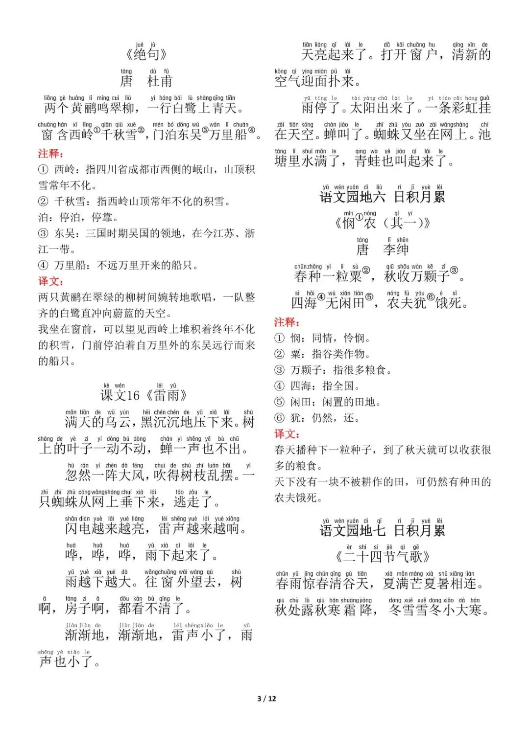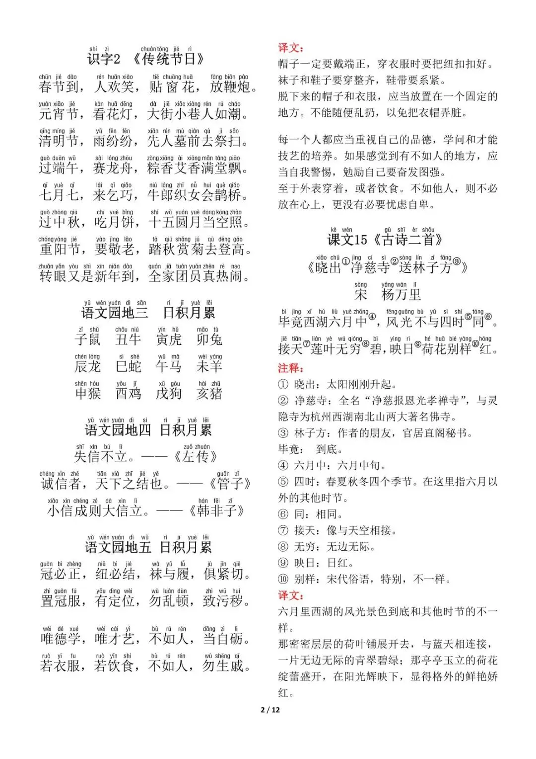 26年部编版二年级下册语文《必背课文+古诗+日积月累》汇总,可打印