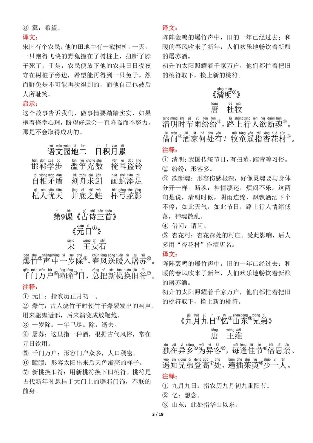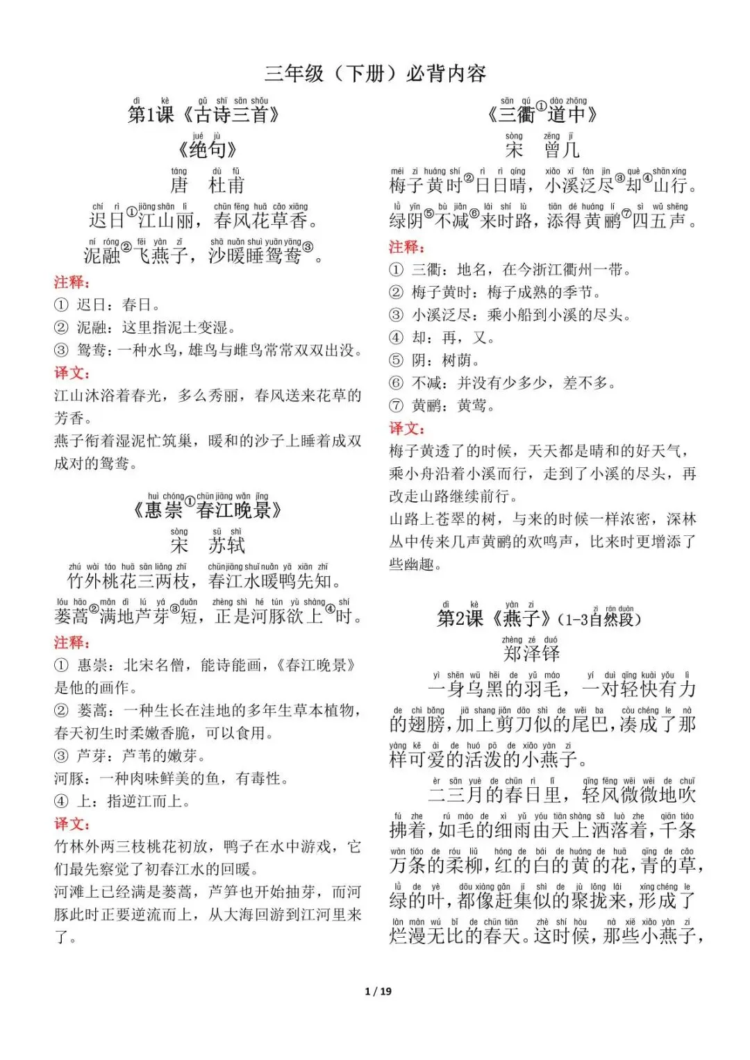 26年部编版三年级下册语文《必背课文+古诗+日积月累》汇总,可打印