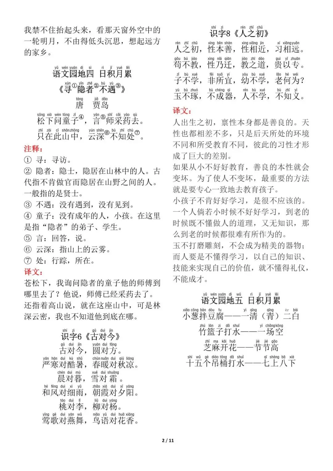 26年部编版一年级下册语文《必背课文+古诗+日积月累》汇总,可打印