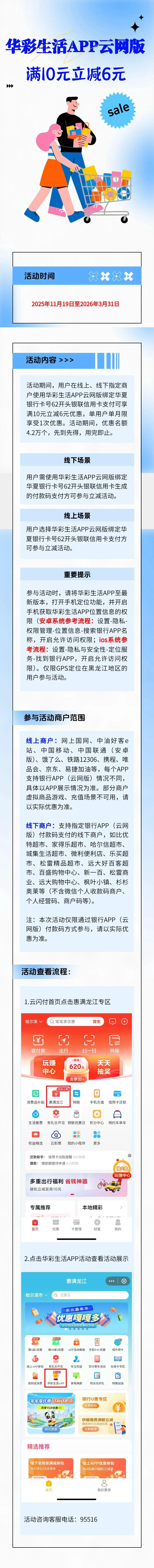 华夏银行 | 华彩生活APP云网版,指定商户满10元立减6元→