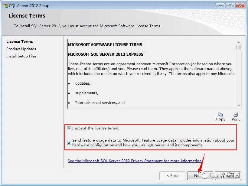 5.选择“I accept the…”和“Send feature usage data…”,然后点击“Next”