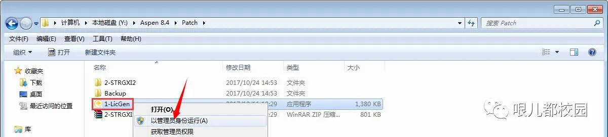 16.打开“Aspen 8.4\Patch”文件夹,鼠标右击“1-LicGen”,选择“以管理员身份运行”