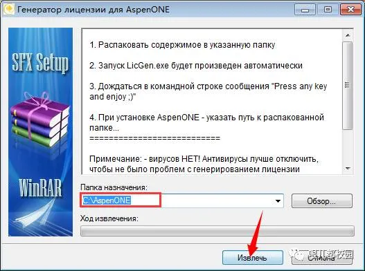 17.点击“Извлeчb”,注意安装的目录,默认是C盘(最好不要改动软件的安装目录,以免出错)