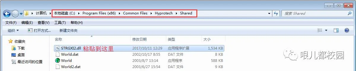 35.找到目录(默认为:C:\Program Files (x86)\Common Files\Hyprotech\Shared)进入该文件夹,粘贴刚刚复制的“STRGXI2.dll”文件