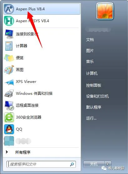 39.安装破解完成,点击左下角(开始)菜单栏,进入所有程序,点击“Aspen Plus V8.4”,打开软件