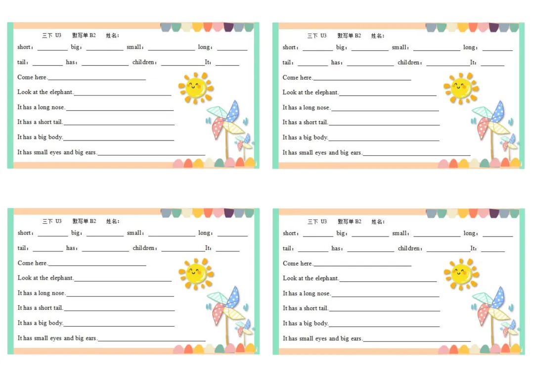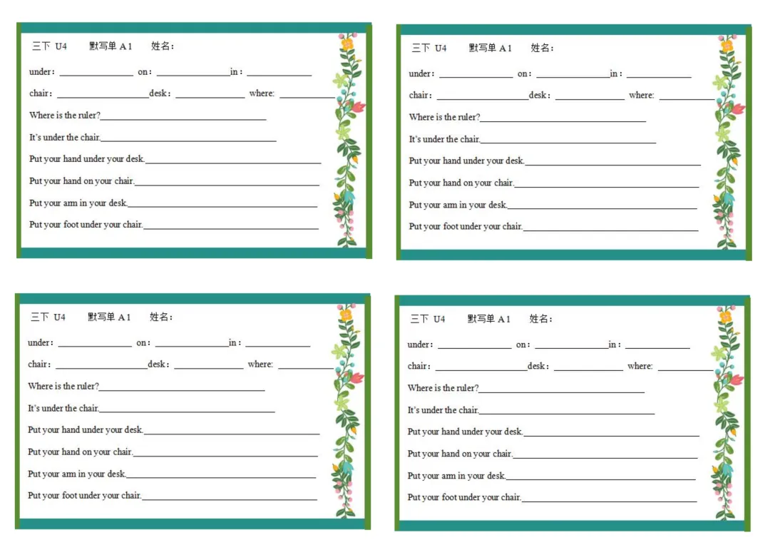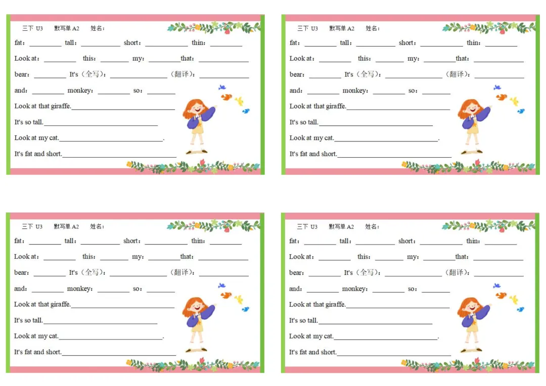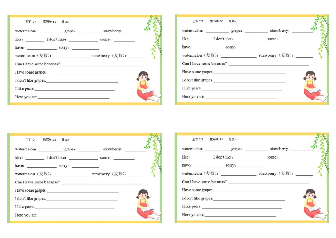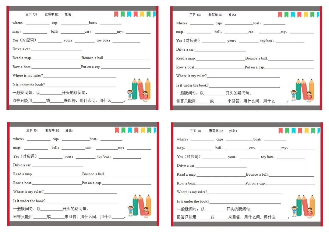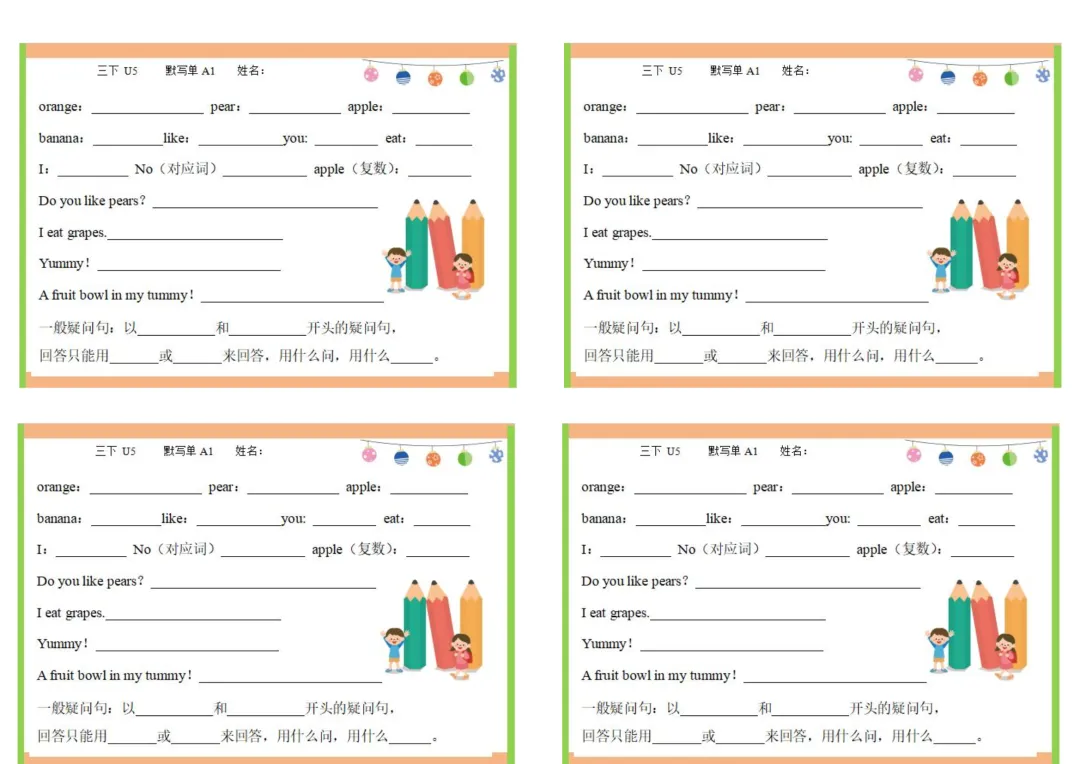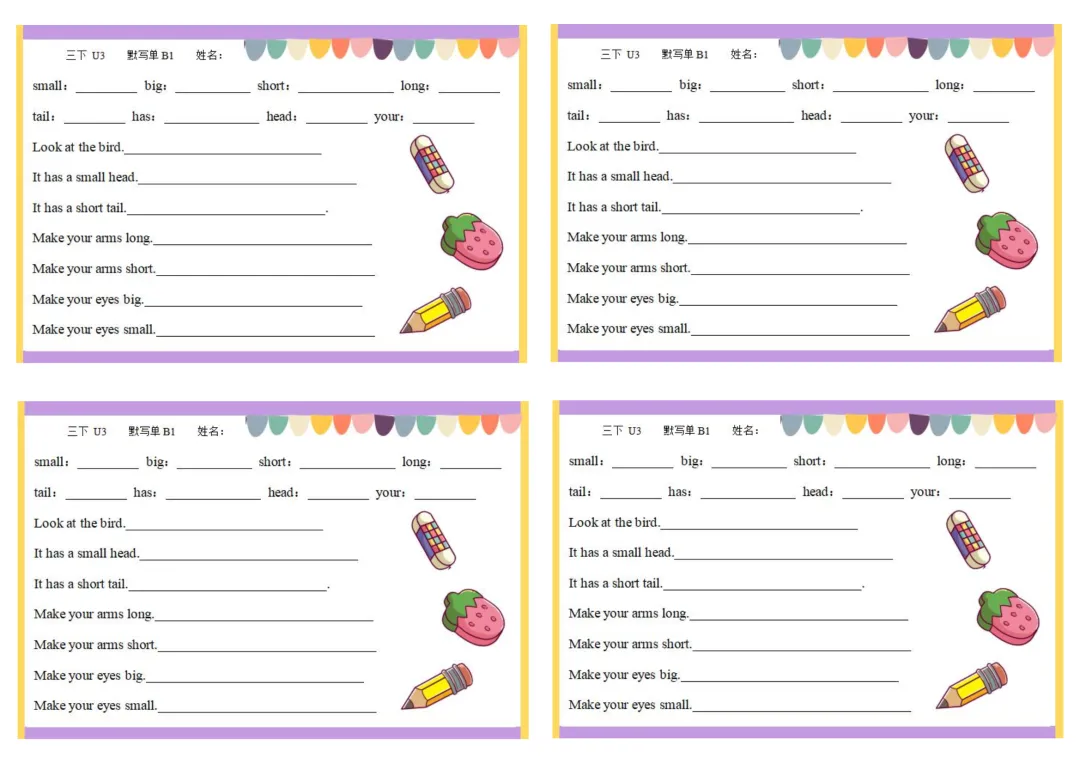 人教PEP新三年级英语下册彩色默写单,免费下载