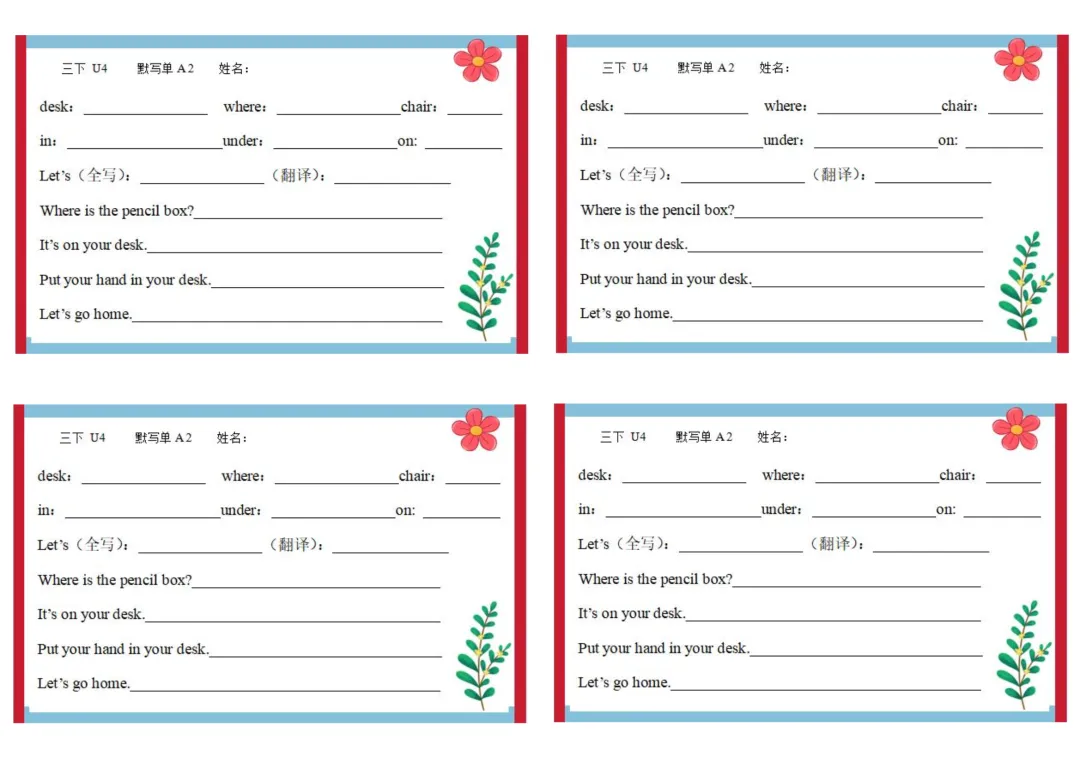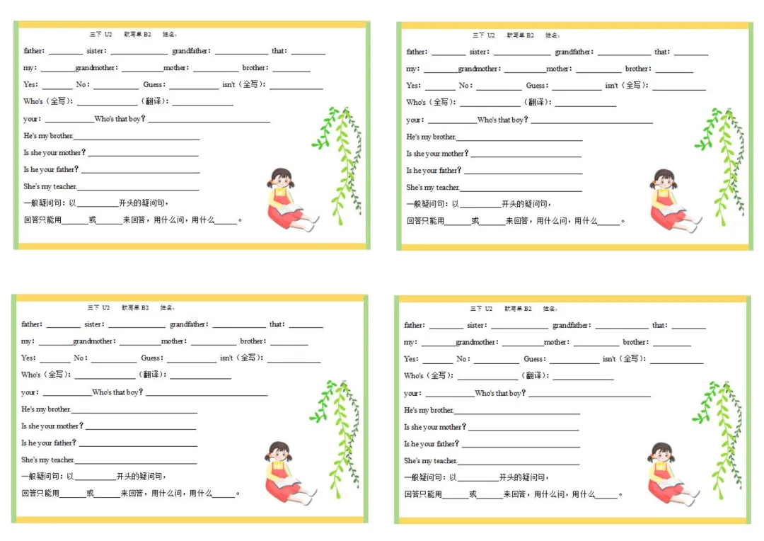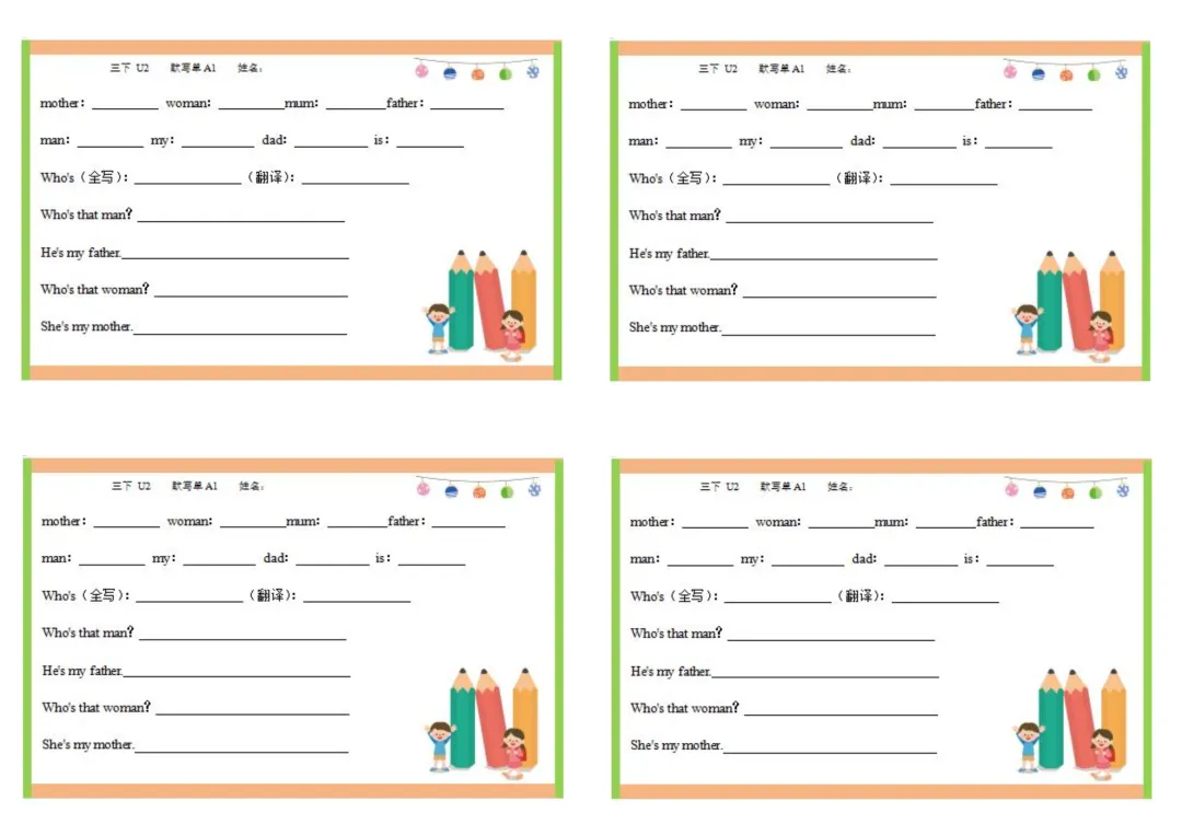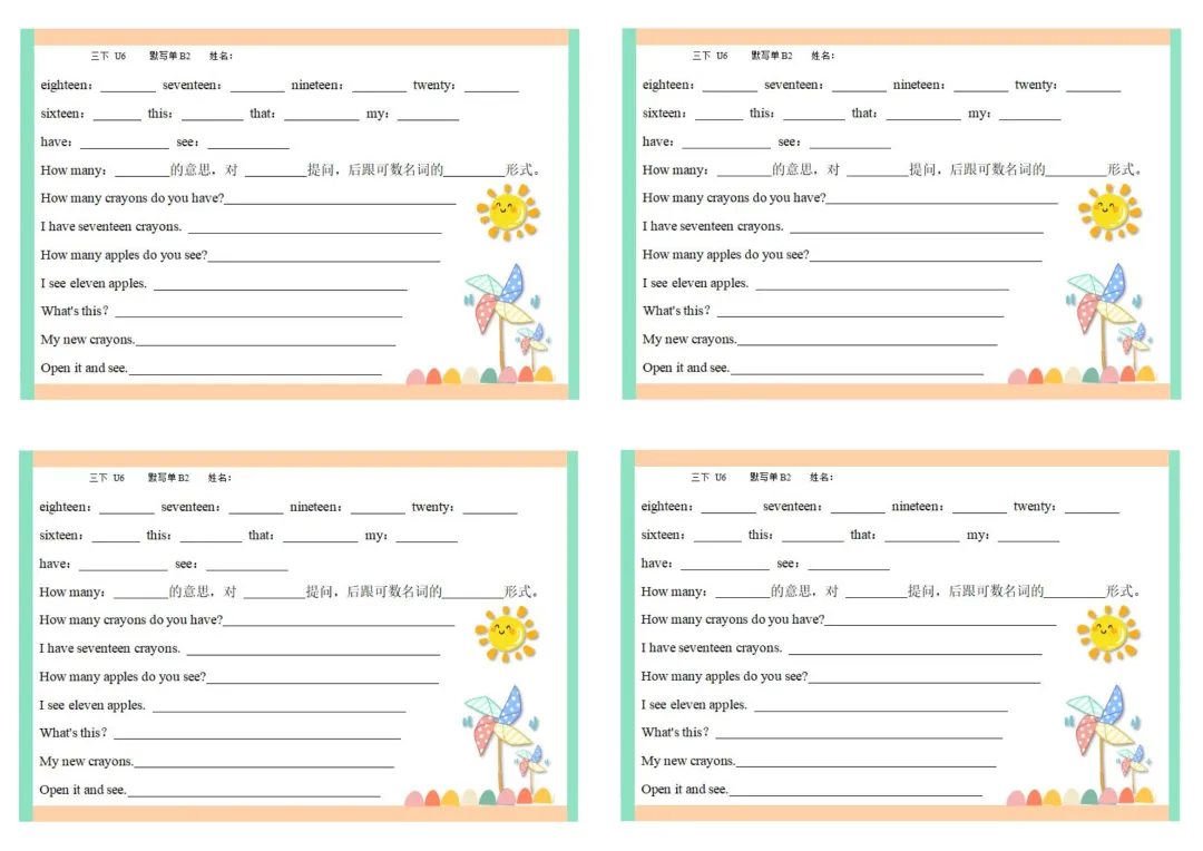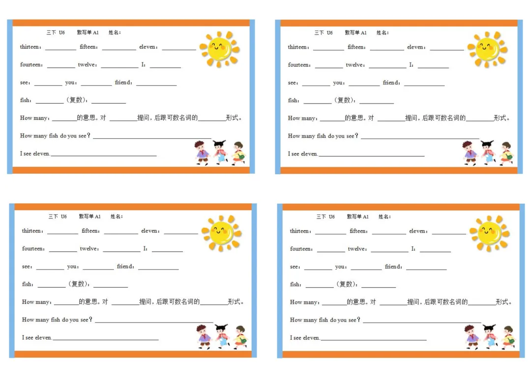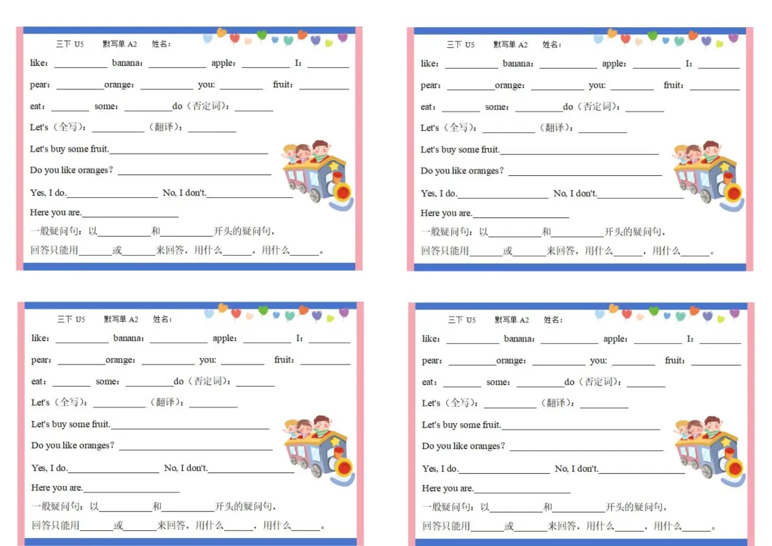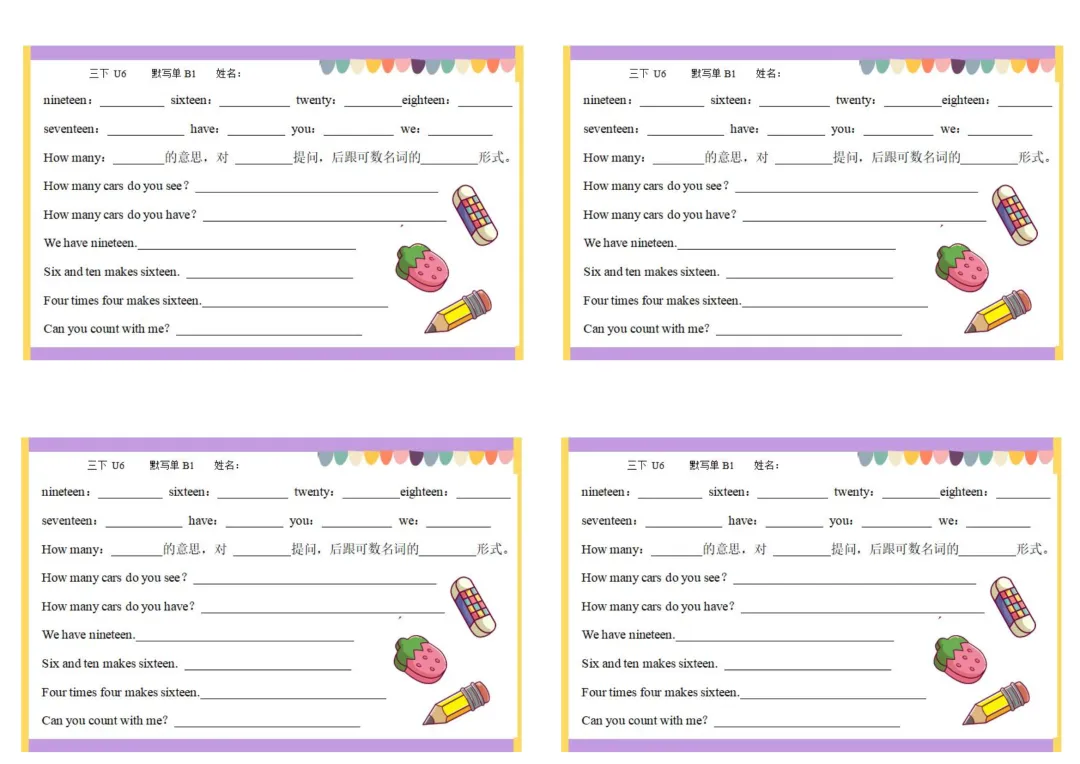 人教PEP新三年级英语下册彩色默写单,免费下载
