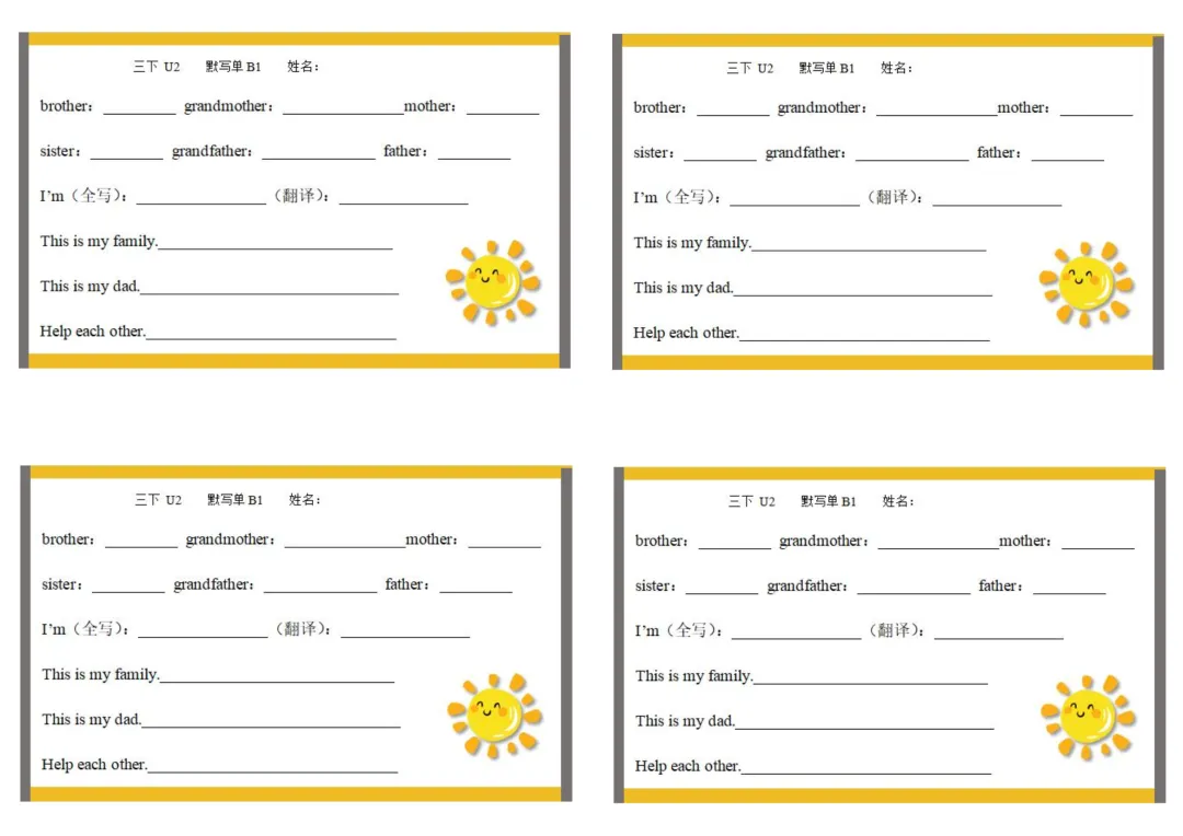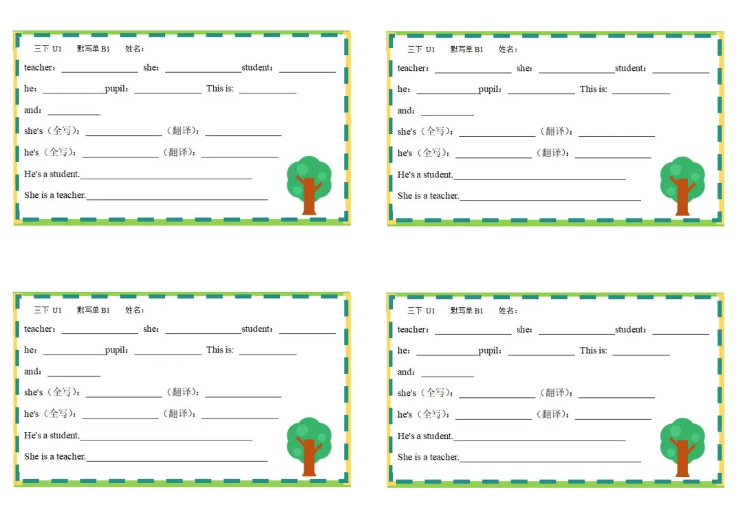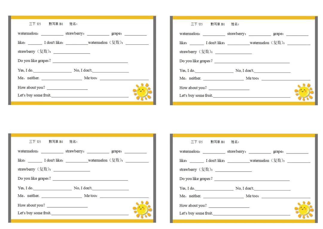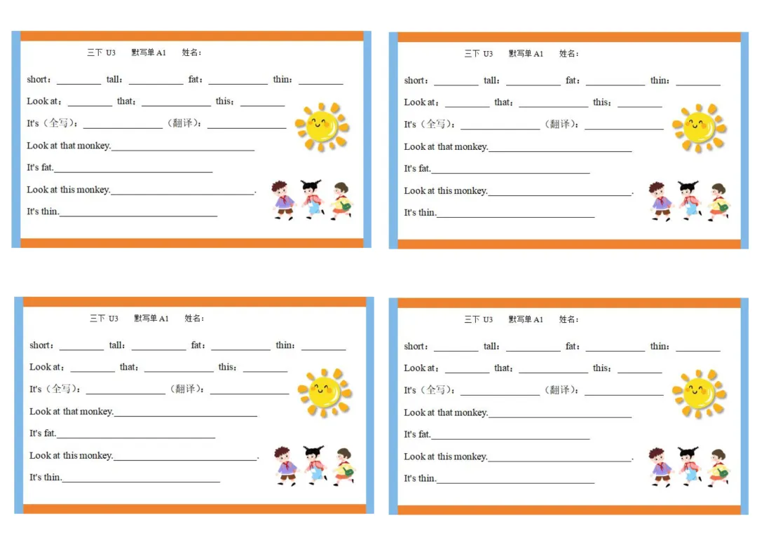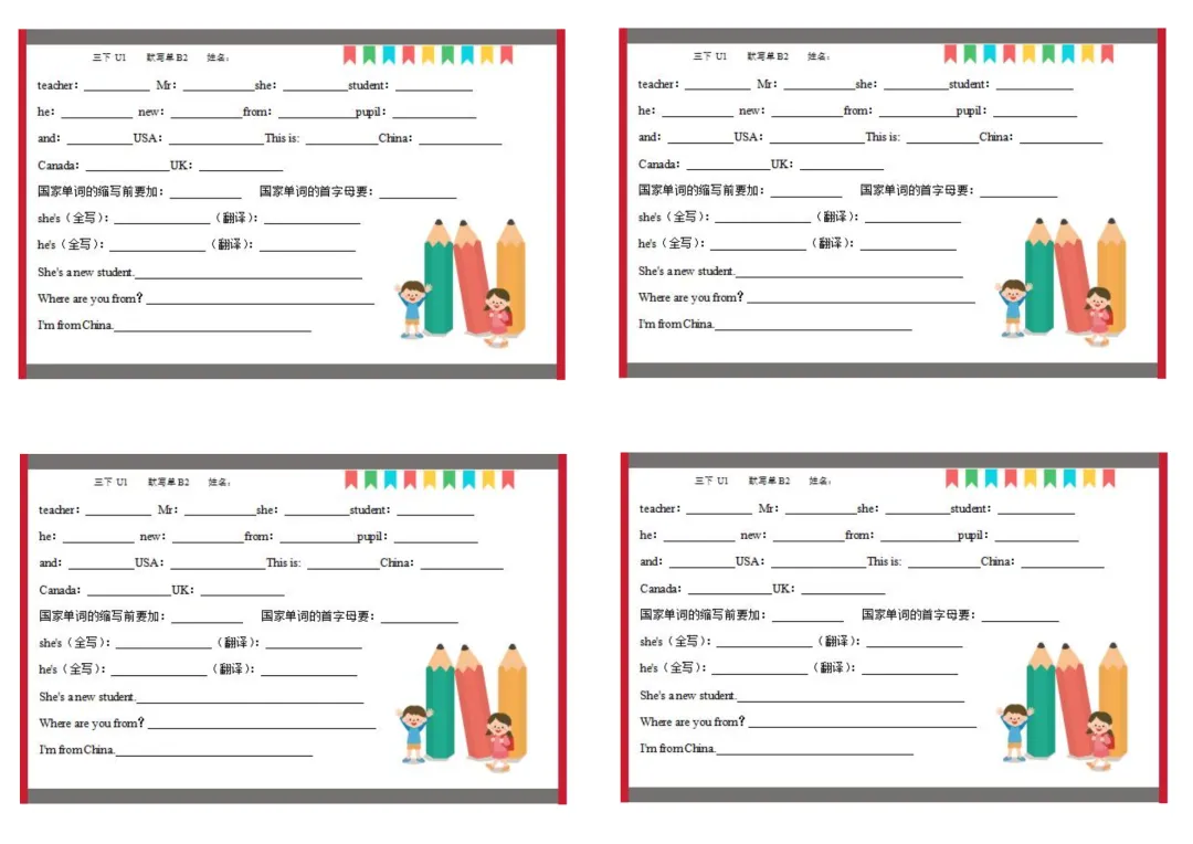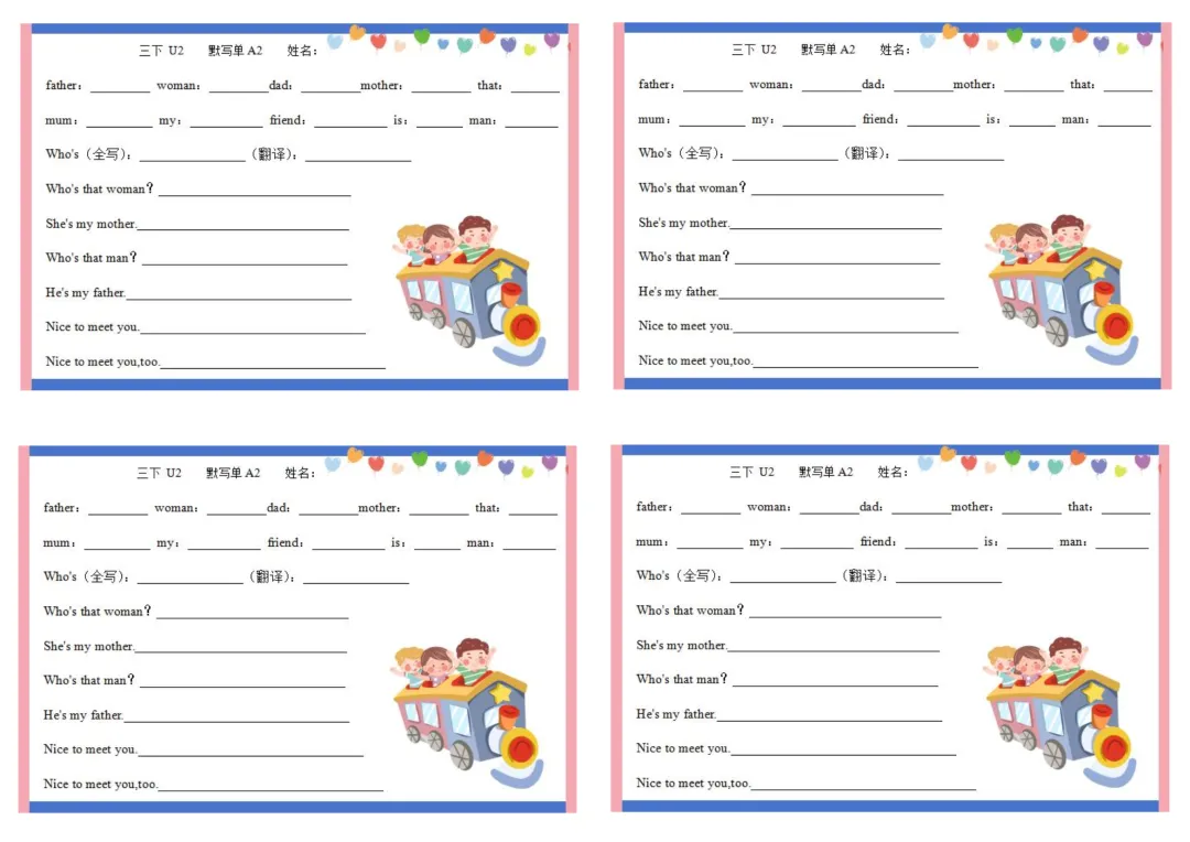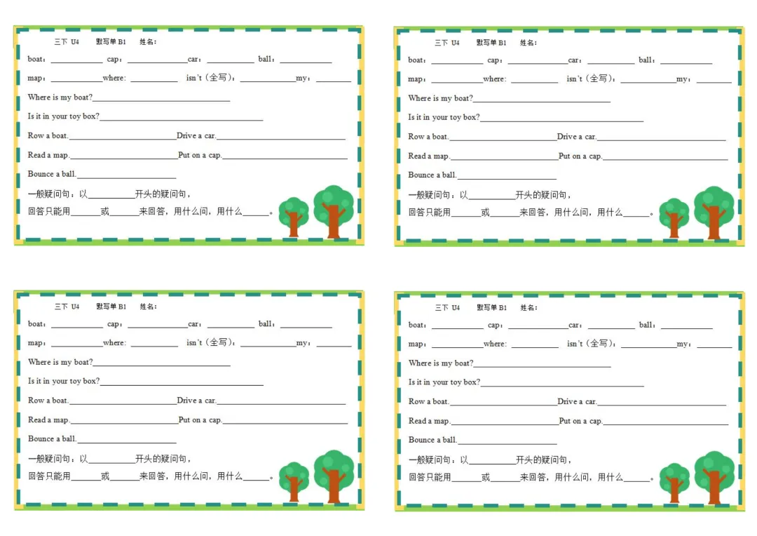 人教PEP新三年级英语下册彩色默写单,免费下载