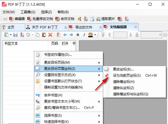 更改目标页面坐标(Z):更改坐标、设为当前页坐标、清除横坐标、清除纵坐标、清除横坐标与纵坐标