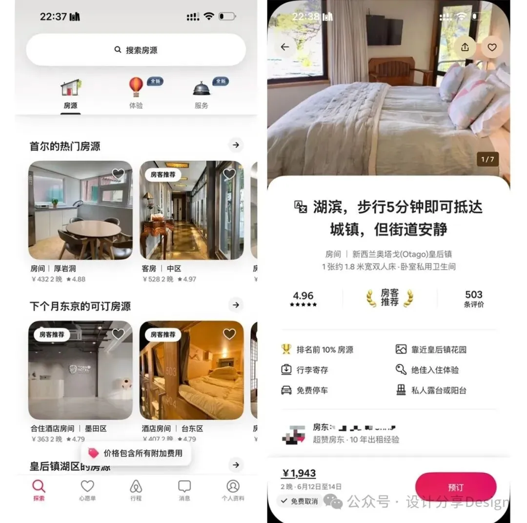 本文授权转自:厚璞设计(ID:gh_4d519a0466bd)作为全球领先的民宿短租平台,爱彼迎 App 的设计不仅是功能工具,更是品牌理念的延伸。其核心目标是通过设计打破陌生人之间的隔阂,传递 “归属感”—— 这一理念贯穿于视觉、交互与功能创新的每个细节。本文将从设计哲学、交互逻辑、视觉语言和功能创新四个维度拆解其设计亮点,为设计师提供灵感参考。