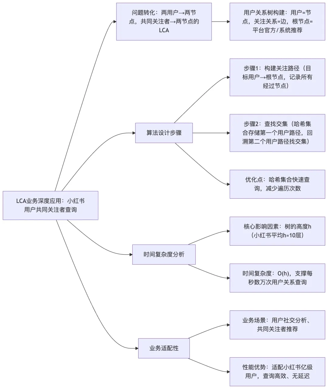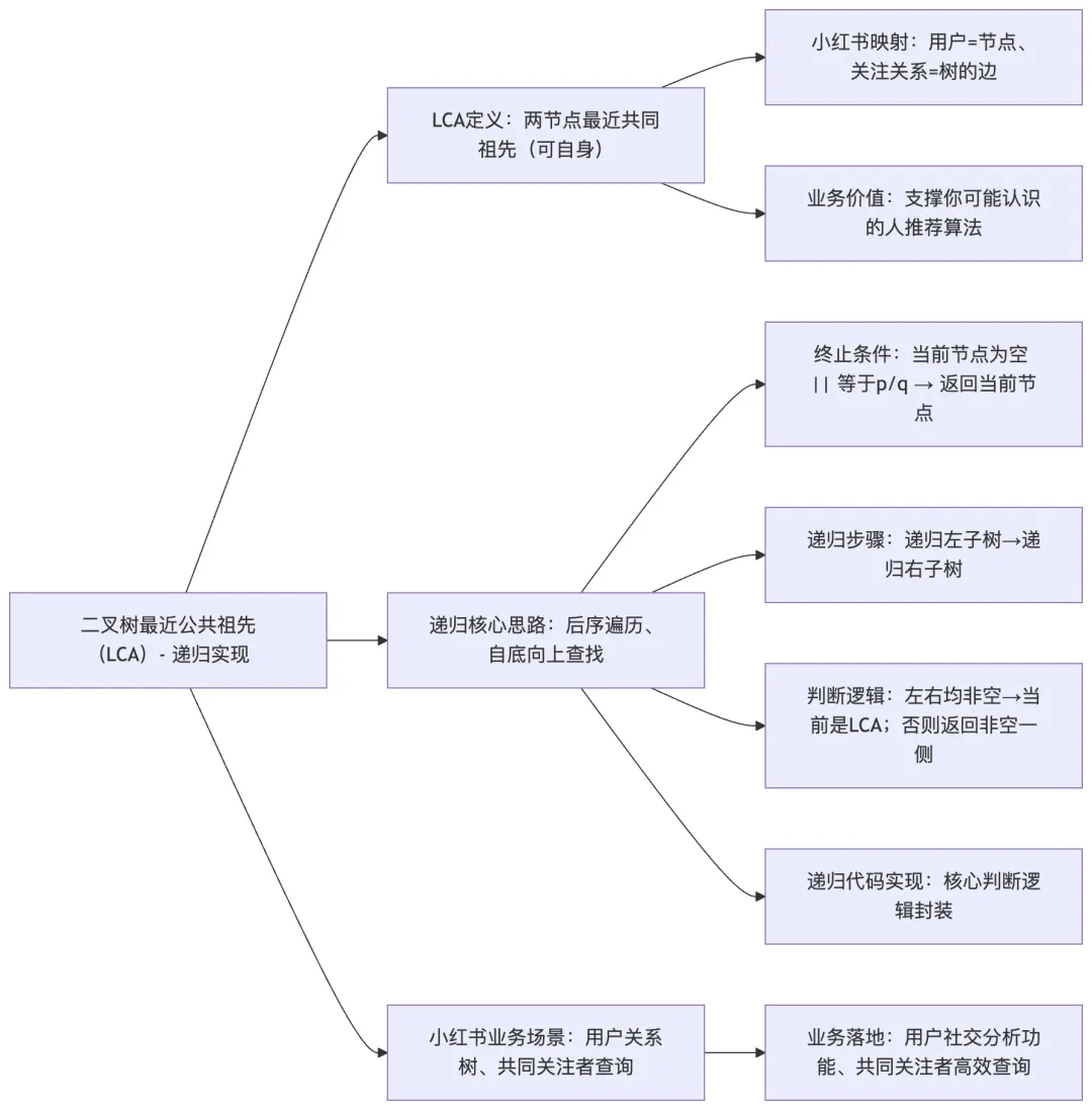 核心说明:梳理LCA递归实现的核心逻辑、步骤,关联小红书用户关系树、”你可能认识的人”推荐等业务场景,体现算法与业务的落地关联。