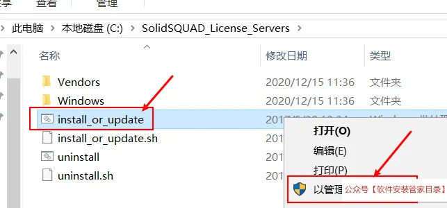 6.鼠标右键以管理员身份运行install_or_update文件;