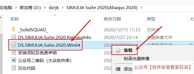 12.右键点击DS.SIMULIA.Suite.2020.Win64文件,点击装载;