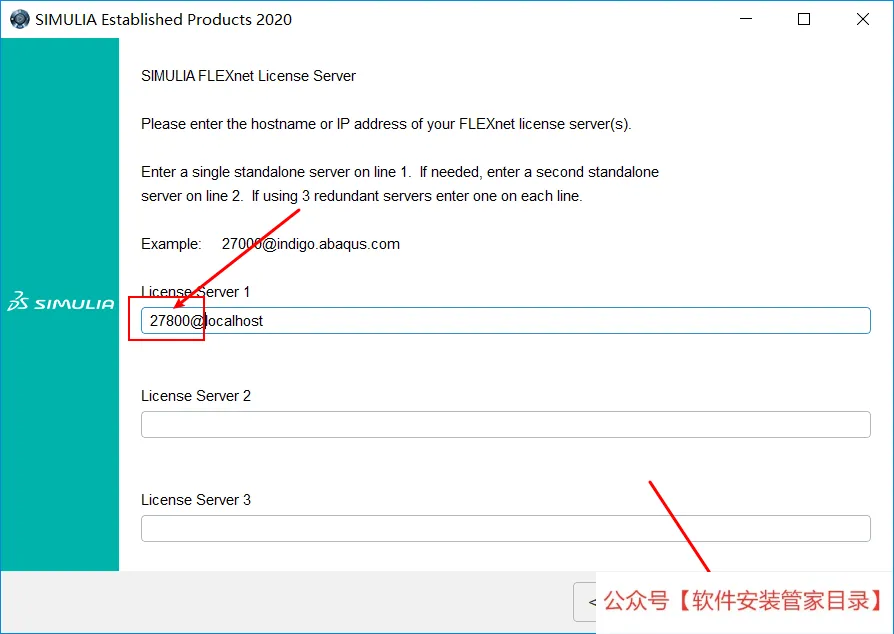 24.在License Server1中填写27800@localhost,然后点击下一步;
