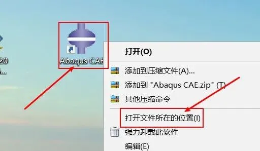 54.现在我们来把软件调试成中文版的,鼠标右键Abaqus CAE软件选择打开文件所在位置;