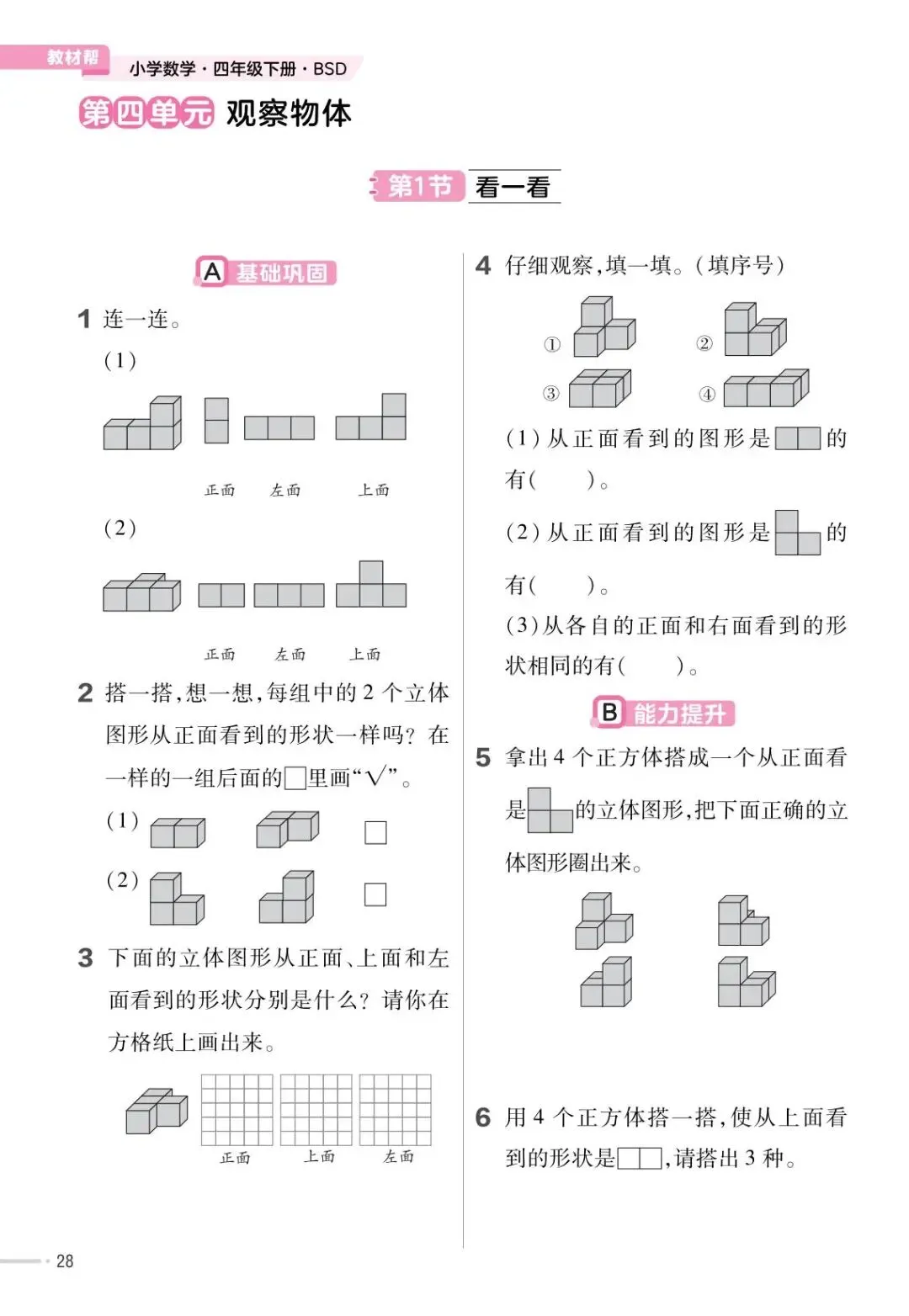 2026春北师大版四年级下册数学全册同步一课一练,带答案,免费领取,可打印.