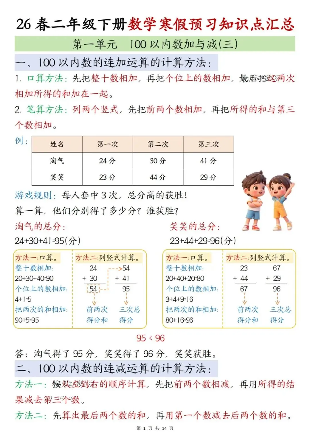 2026春【北师大版】二年级下册数学《寒假预习全册知识点汇总》,高清完整可打印