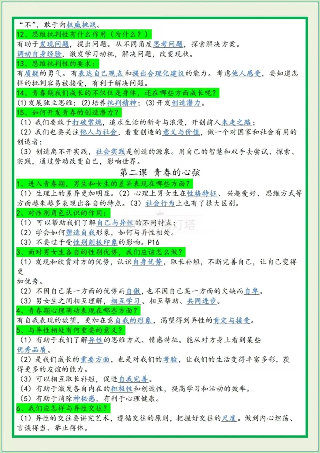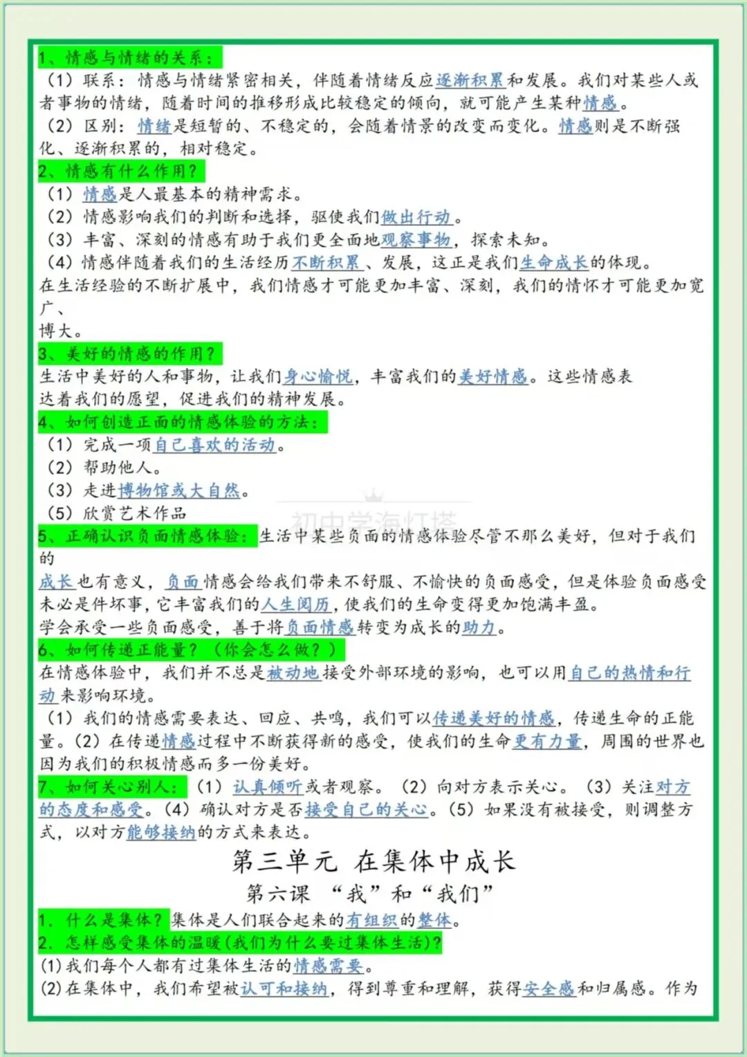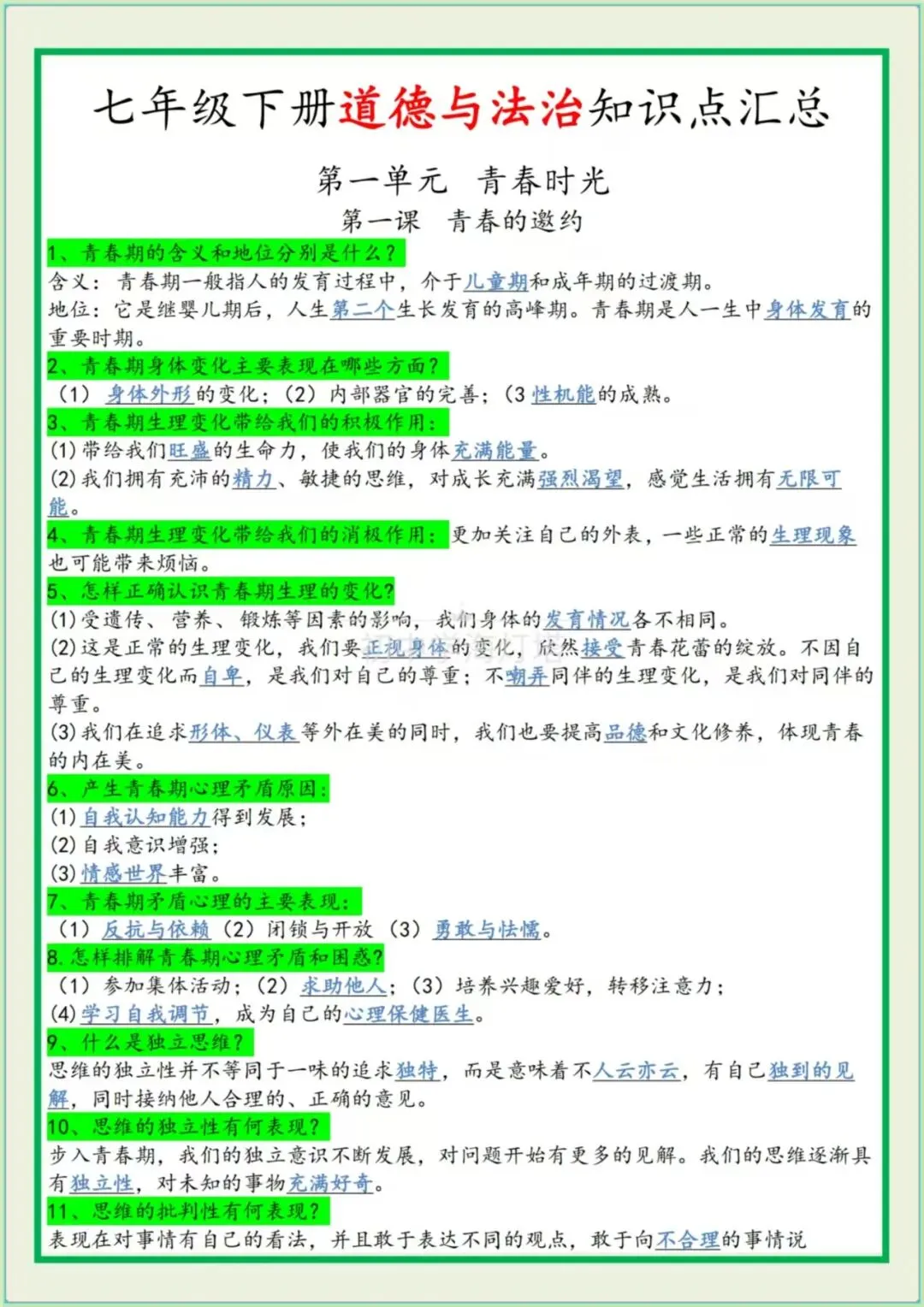 今日分享七年级下册道法: