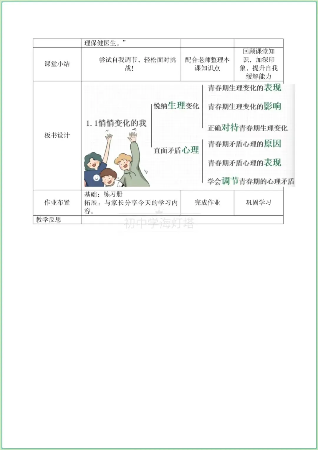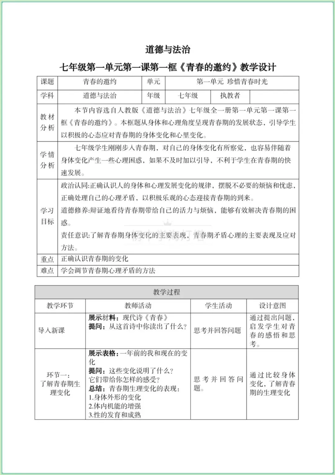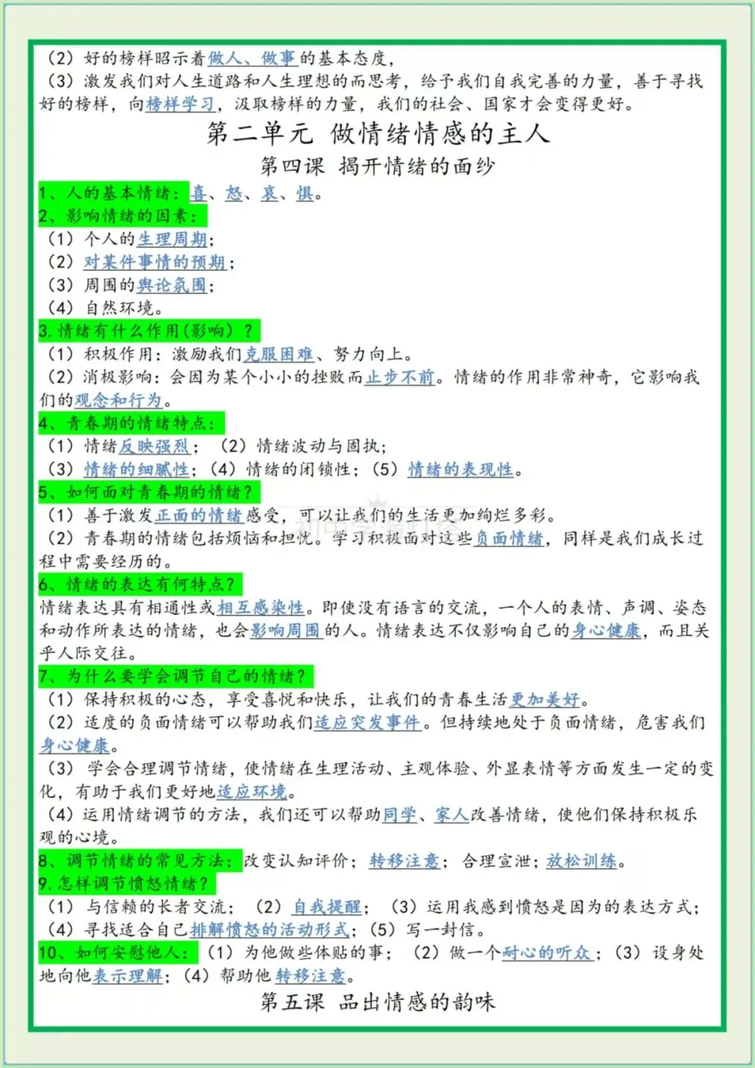 今日分享七年级下册道法: