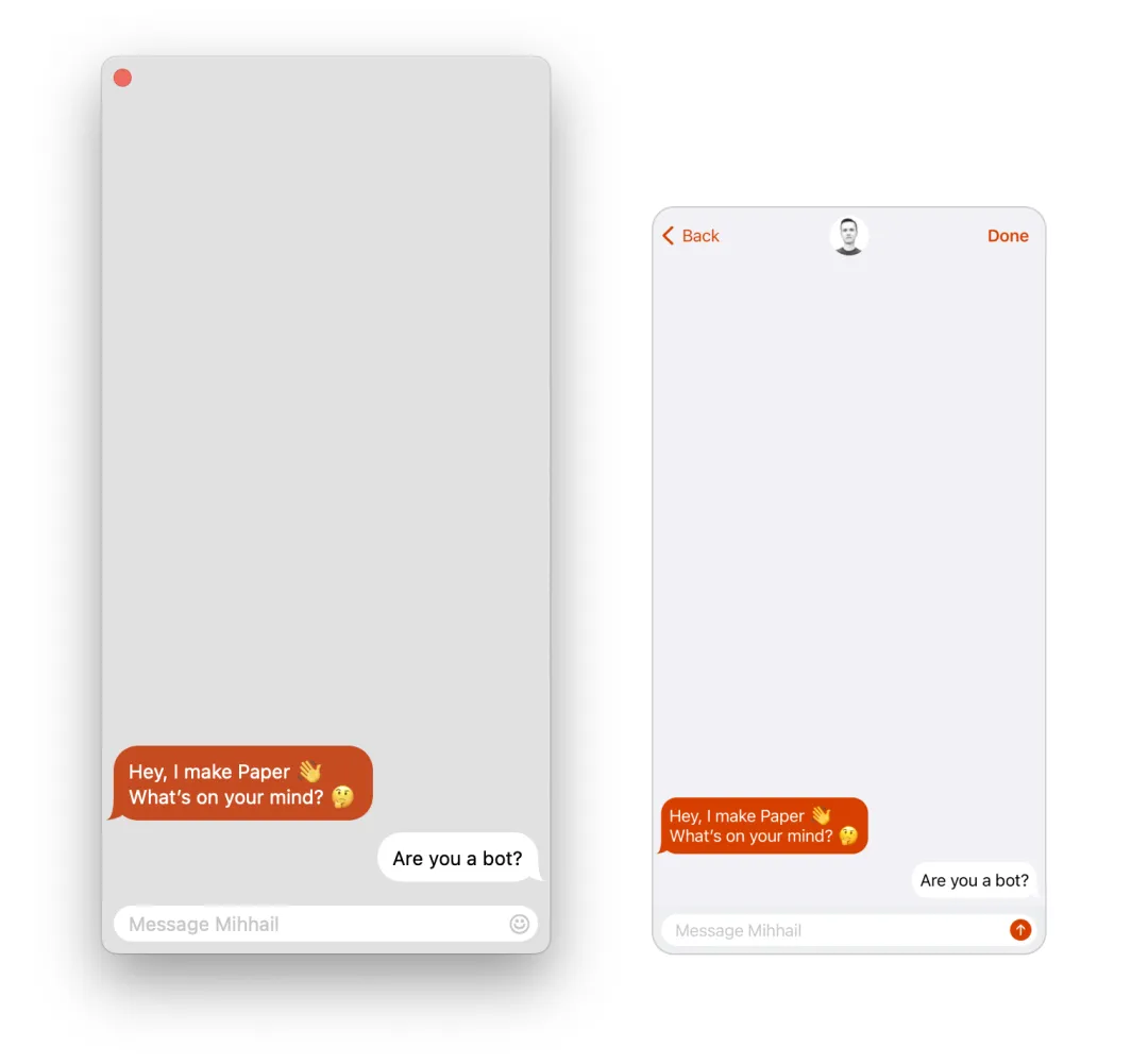 Paper 仅使用 AppKit 和 UIKit 中的本机 UI 元素,因为它们的维护开销最低:由Apple自动更新,向后兼容,保证在每个设备上工作。