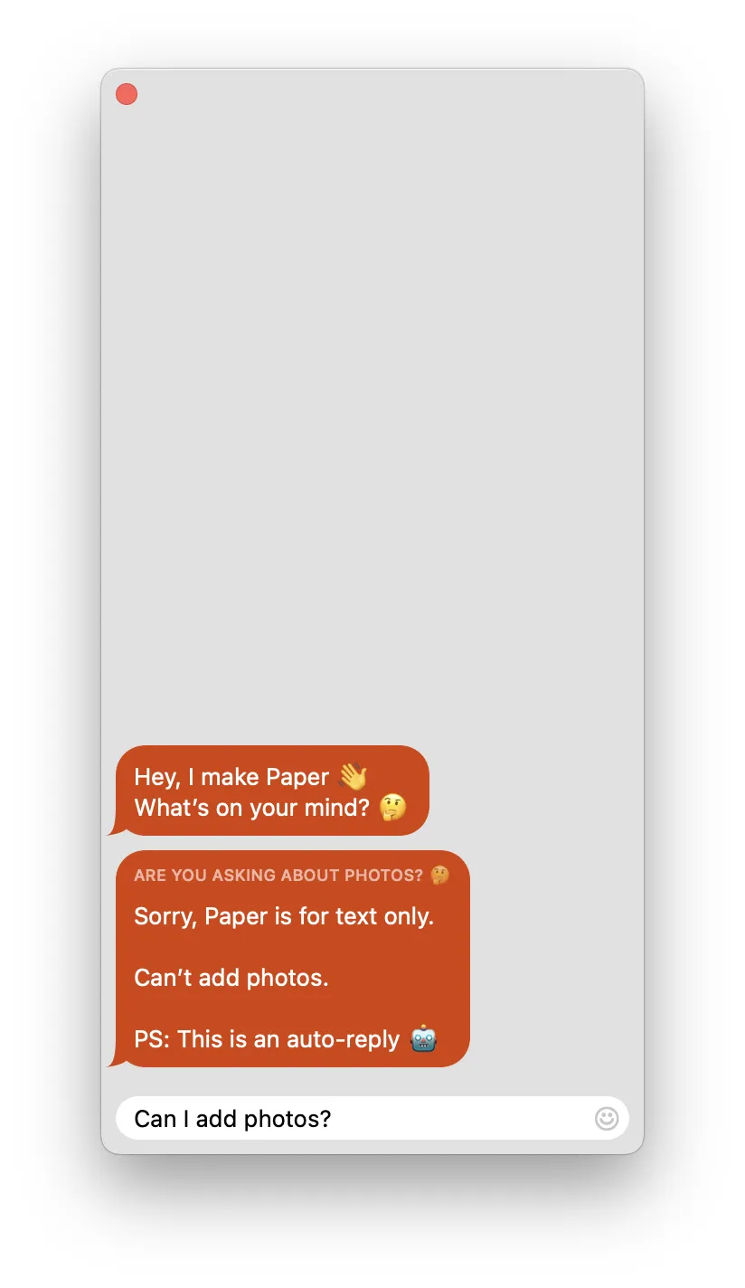 Paper最早用的是一个叫做HockeyApp的平台,Mac版自带聊天功能,这可比电子邮件反馈好多了,用户可以直接启用聊天,进行反馈。