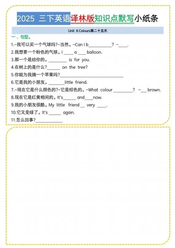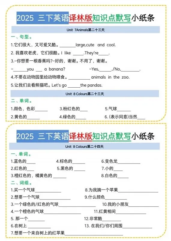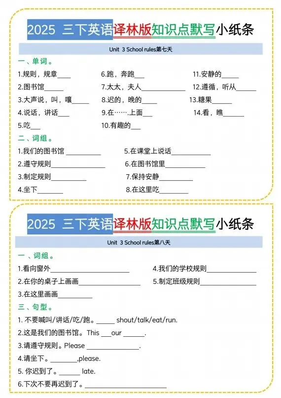 今日分享26春三下英语译林版知识点默写小纸条(完整电子版可打印)!高清电子版可直接打印,排版规整适配练习,不用费心整理,孩子每日一练夯实基础,家长辅导省心!