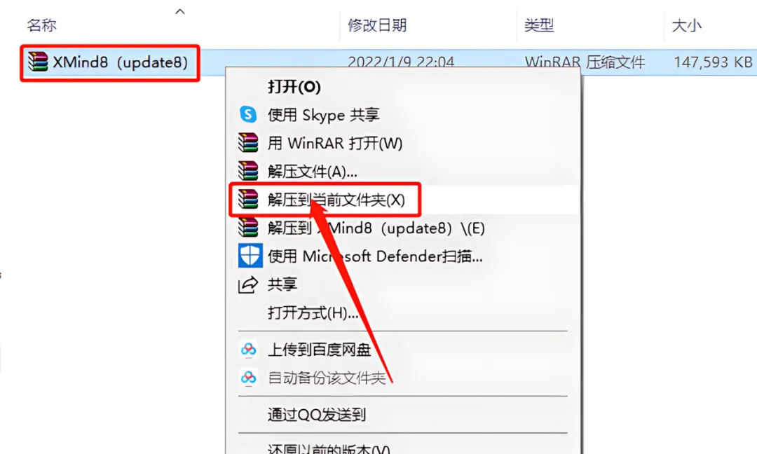 1.打开下载的Xmind 8软件安装包,鼠标右击压缩包选择【解压到当前文件夹】。