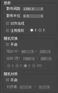 (四)随机材质。将设置的材质槽范围内的材质随机分配给散布对象。