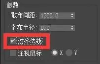 (一)对齐法线。勾选该选项,散布对象Z轴与曲面法线方向对齐,如图: