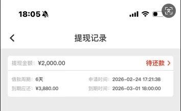 强制放款(被借款): 用户仅在APP内填写个人信息、银行卡号并进行人脸识别后,未进行任何借款操作,银行卡内却突然收到一笔款项(如1300元、1520元)。此时APP内会显示用户已“成功借款”一笔更高的金额(如2000元、3000元)。