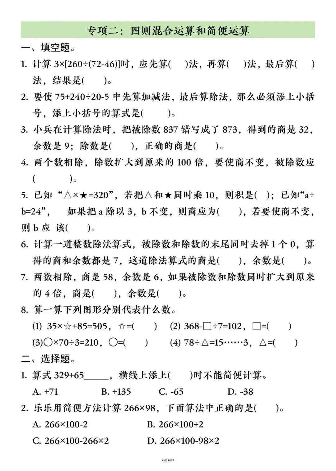 四年级下册数学八大专项重点资料合集高清电子版可打印