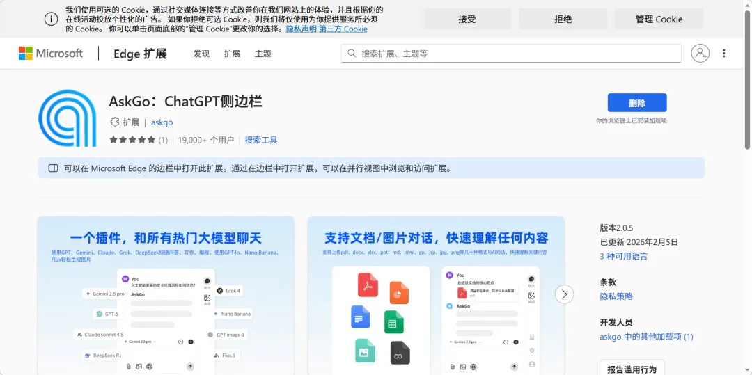 现在的ai模型很多,当不知道使用哪个好的时候,可以看看AskGo插件,轻量便捷、功能全面。安装简便,浏览器扩展商店搜索添加即可,新手可快速上手。