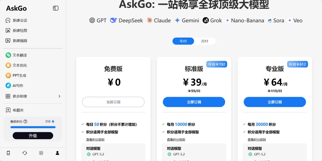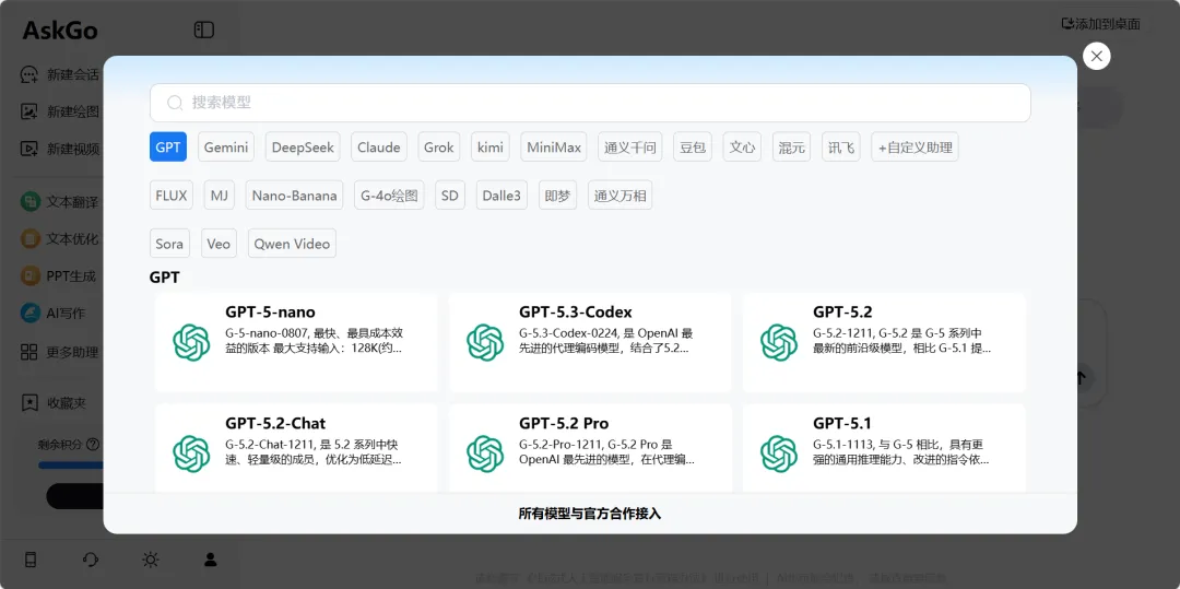 AskGo集成Gemini、GPT等AI模型,无需多账号注册及特殊工具,一键切换即可满足多样需求。每日提供免费次数,轻量化使用零成本。