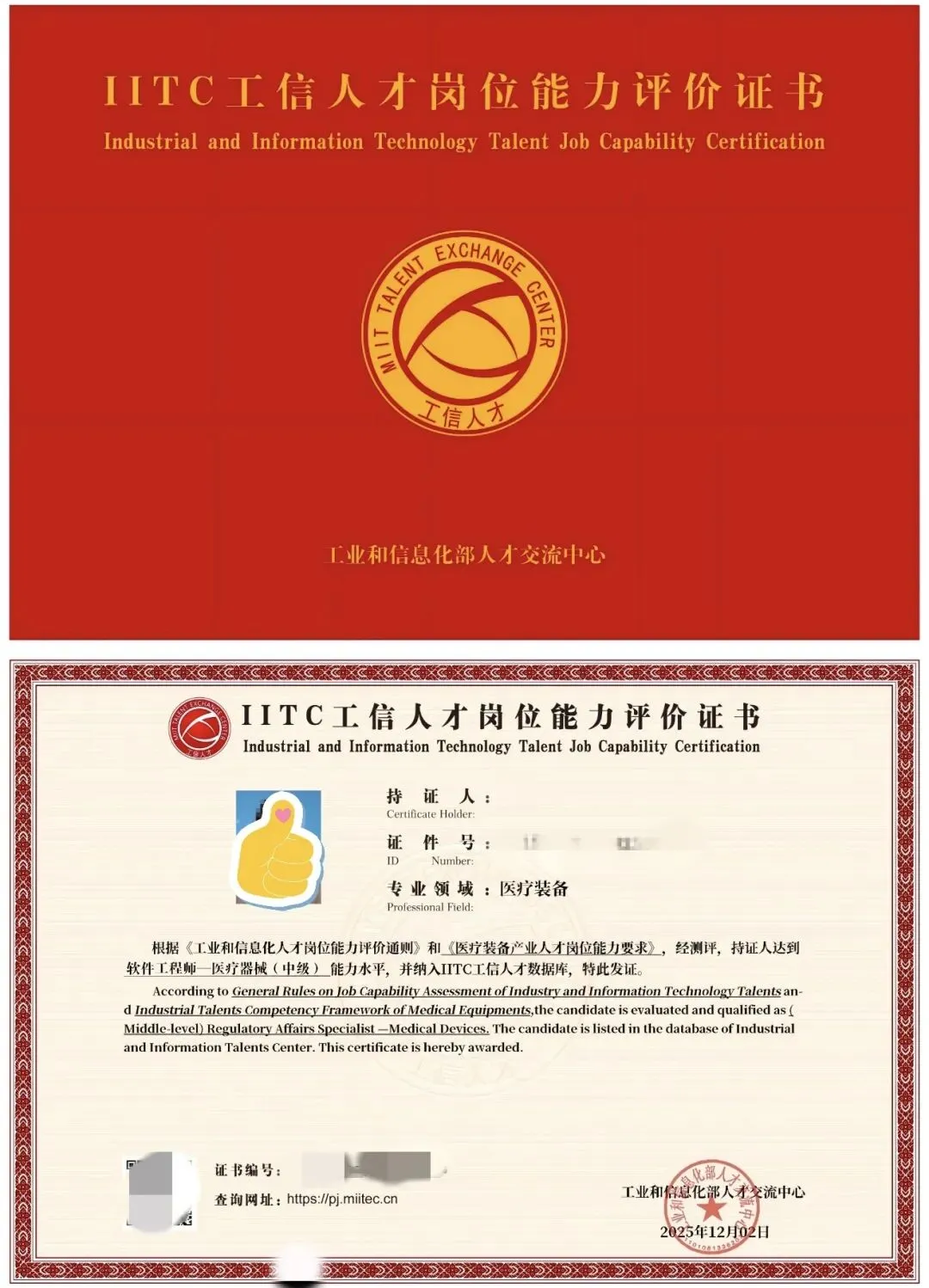 《评价证书:由工业和信息化部人才交流中心颁发的相应岗位级别的《IITC工信人才岗位能力评价证书》,并纳入 IITC工信人才数据库。证书是对持证人专业知识和技能水平的认可,有助于在求职和职业发展中脱颖而出,持有 该证书的专业人士在晋升,加薪更具优势,能够获得更多职业发展机会。