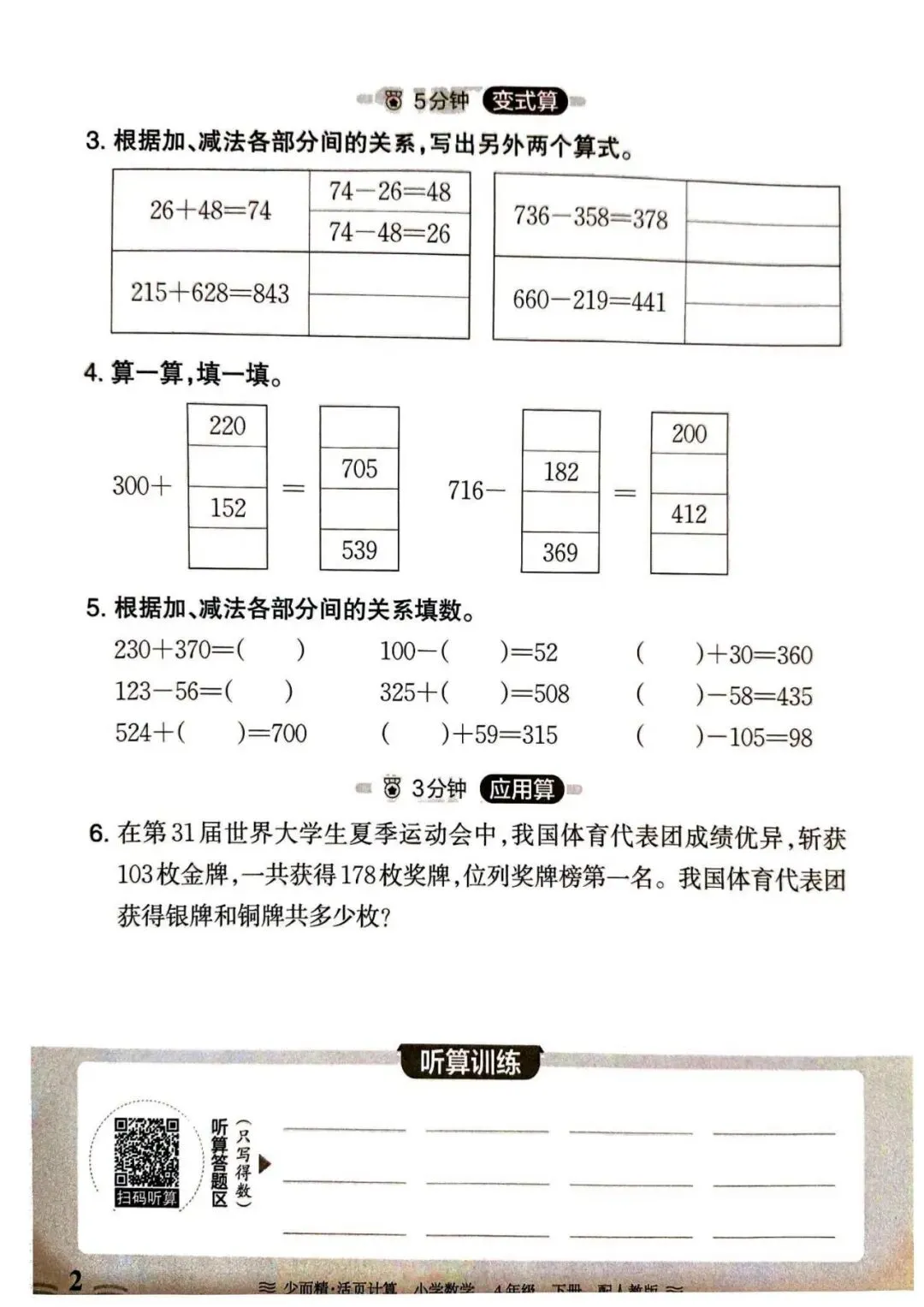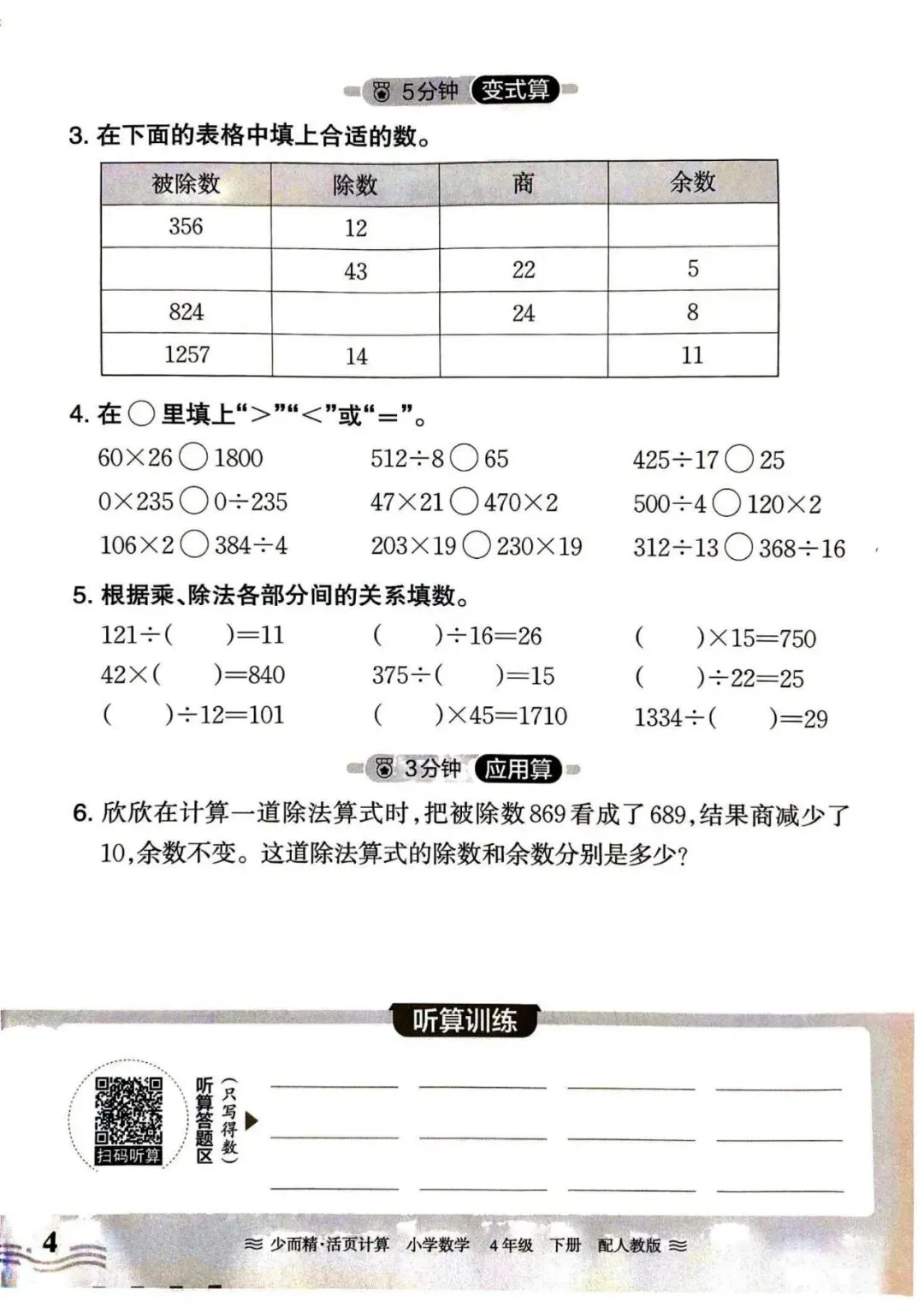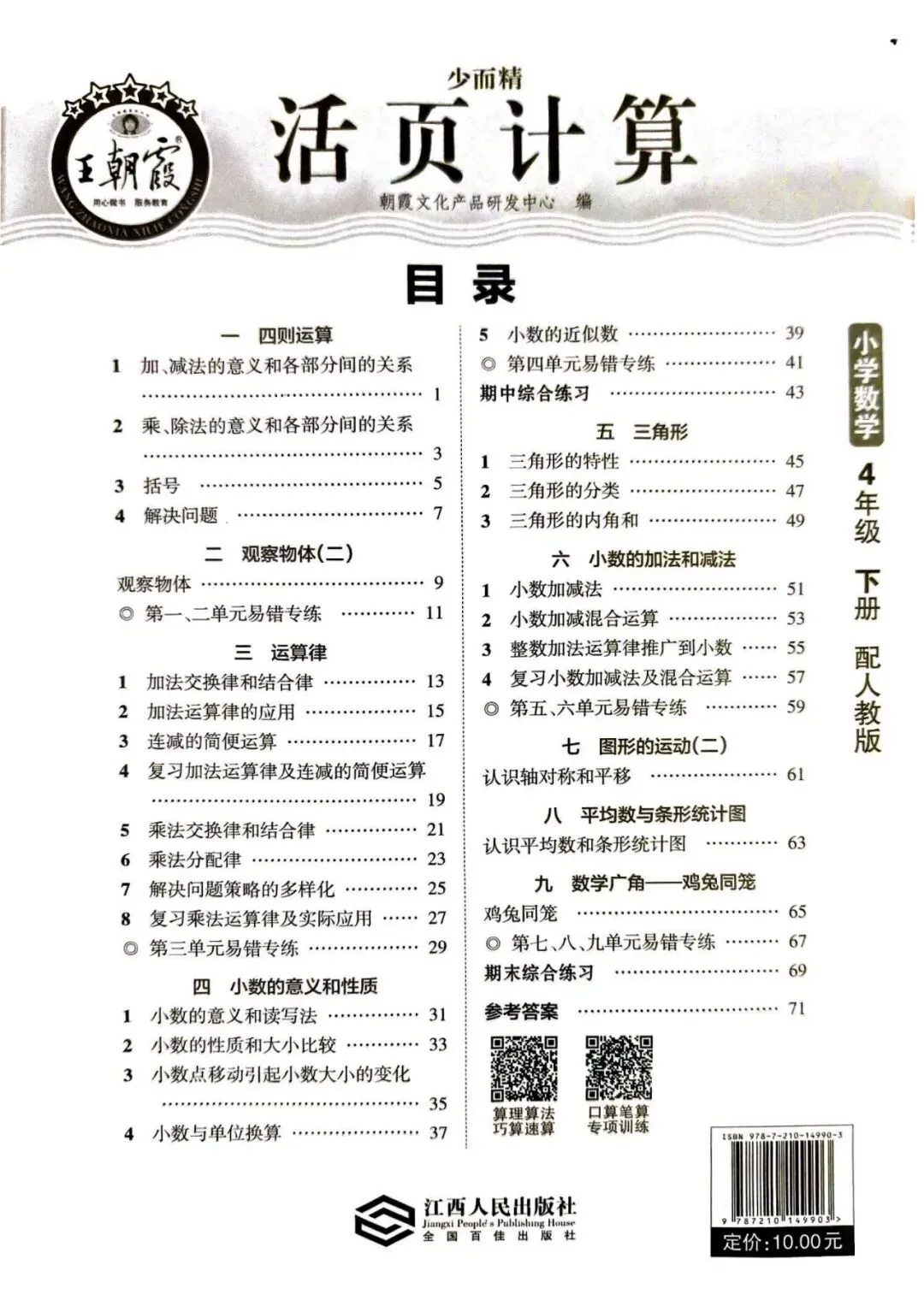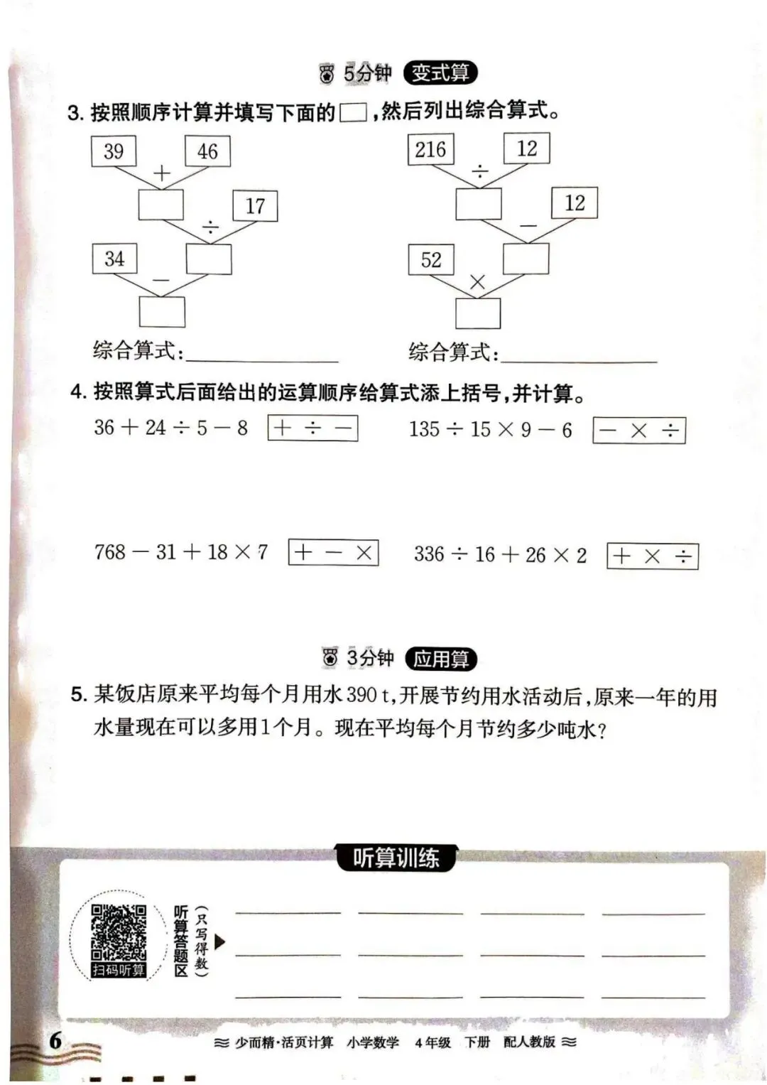 人教数学四年级下册《活页计算》丨 可下载打印