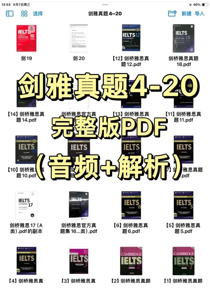 众所周知《剑雅真题 4-20》是每一位考雅宝子不必少的书籍,但是纸质版的带去图书馆又重又贵,带去图书馆也不方便!!