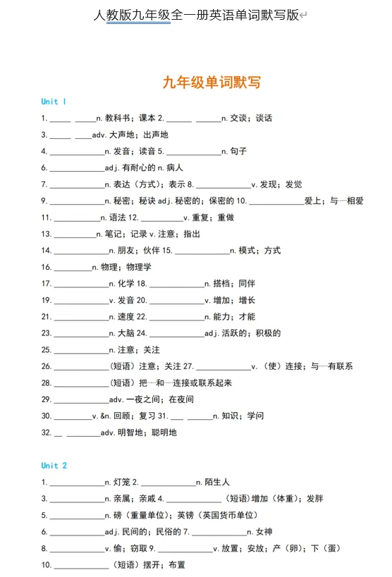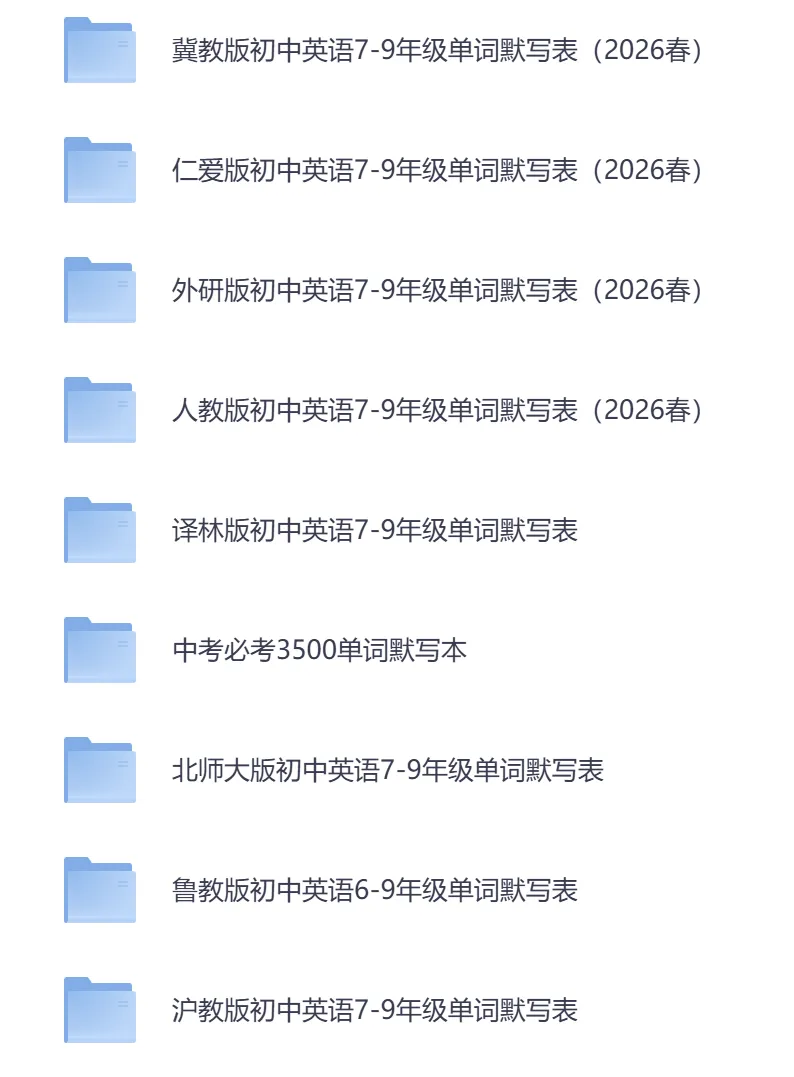 初中英语《单词默写表》7-9年级上下电子版 文件链接: 链接:https://pan.quark.cn/s/bd699f856fd0 文件链接: 链接:https://pan.quark.cn/s/bd699f856fd0