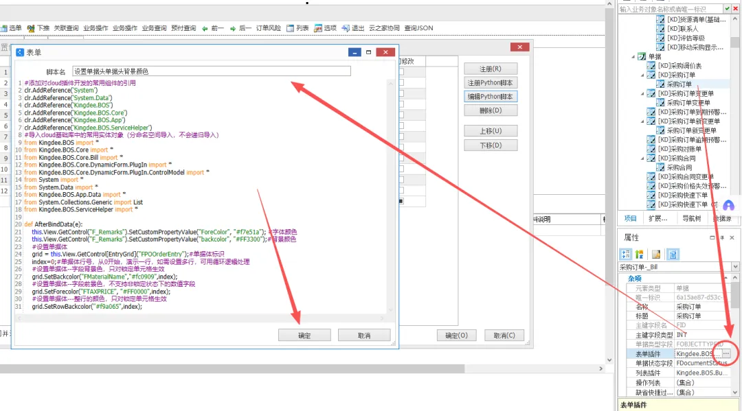 金蝶云星空二开python表单插件之设置单据头及单据体字体和背景颜色,以采购订单为例!!