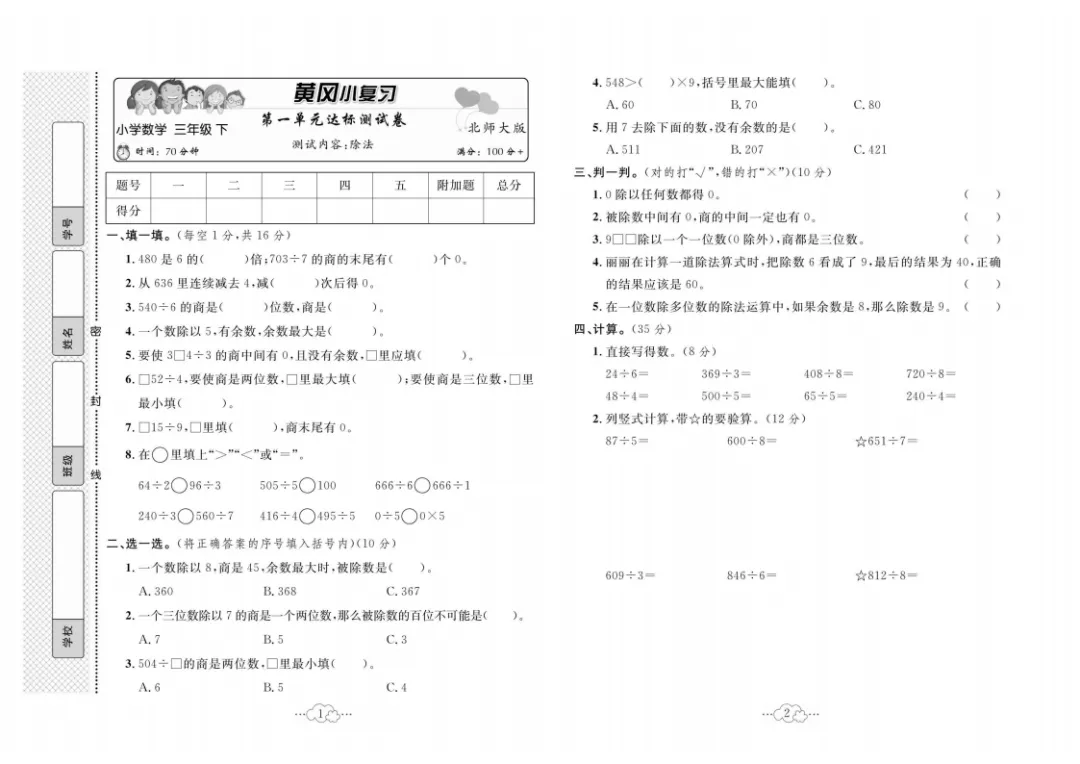 《小复习》北师大版数学小学1-6年级上下册/电子版可下载