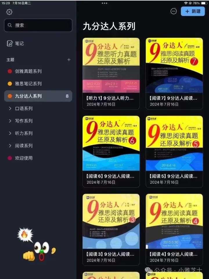 它的题目基本来源于雅思考试真题,备考雅思的宝子们可以把九分达人当成雅思模板去刷!包含听说读写各类型解题技巧与方法。刷题的时候注意分配时间,提升答题效率嗖嗖的。刷透它,考上遇上原题=直接抄答案啦~