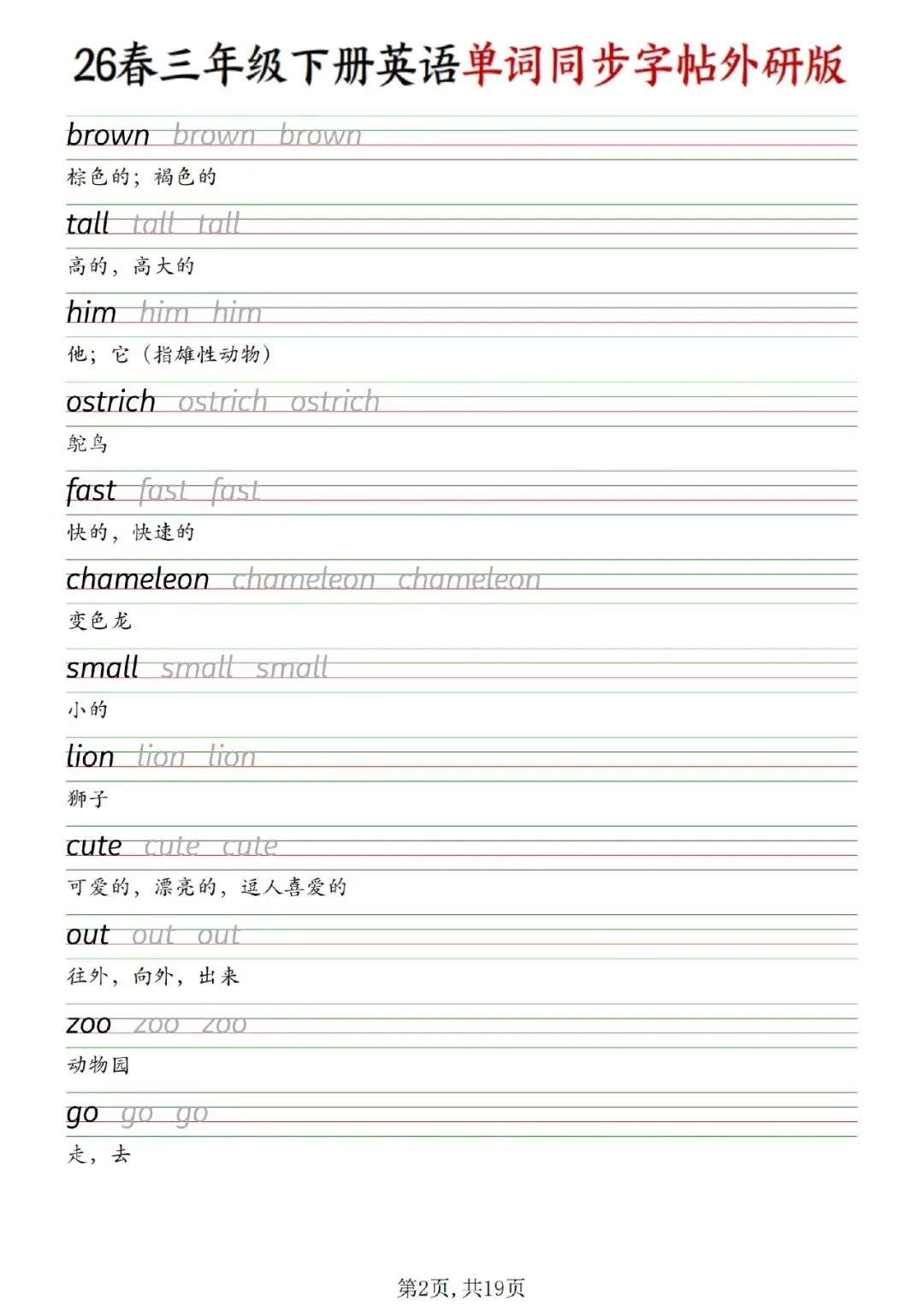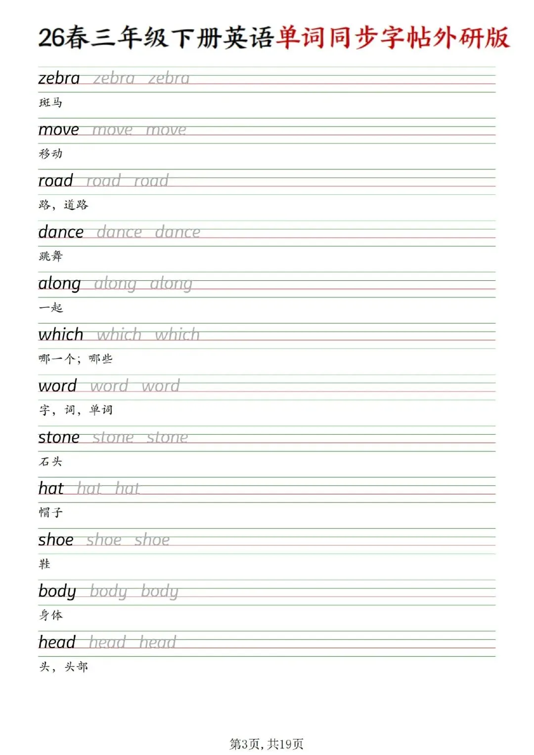 今天给大家分享的2026春三年级下册外研版英语单词同步字帖 整理不易,欢迎下载~