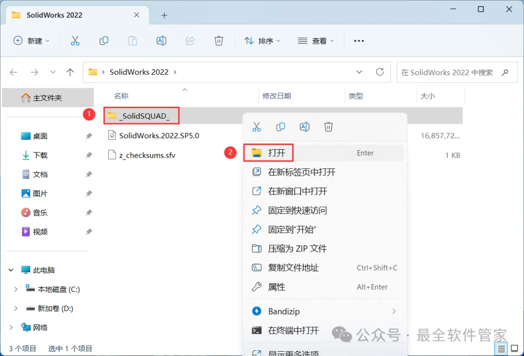 1、下载SolidWorks 2022软件安装包到电脑上,右键选择【解压到SolidWorks 2022\】
