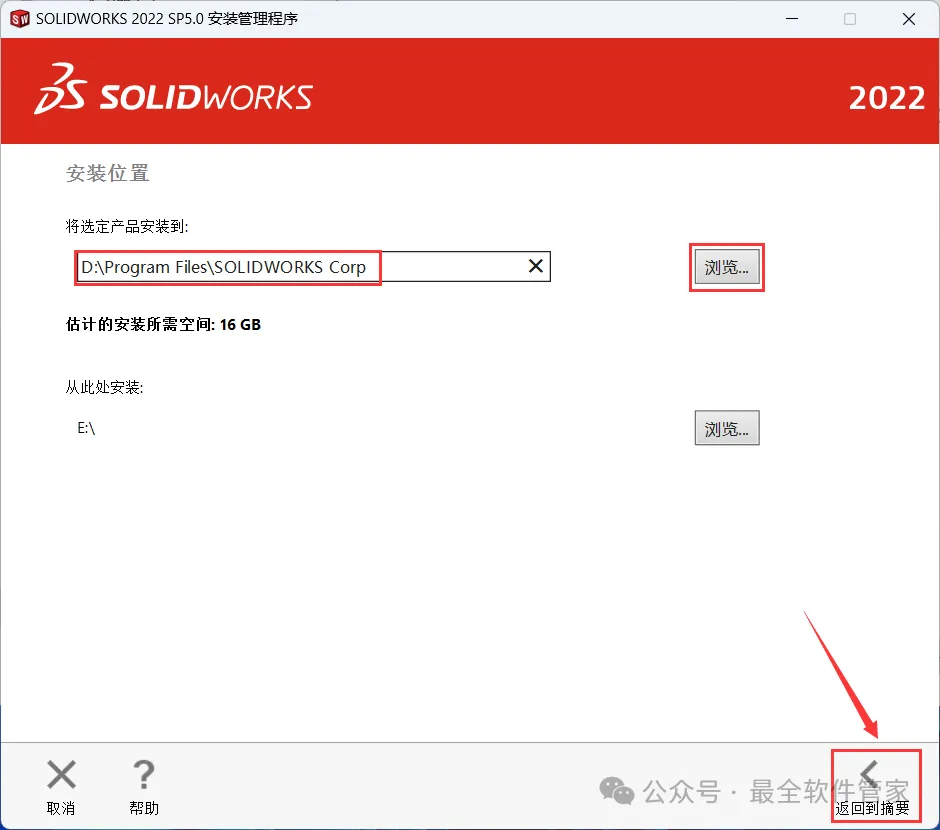 19、软件默认安装在C盘,可自定义更改软件安装位置,这里小编选择安装在D盘;点击【返回到摘要】