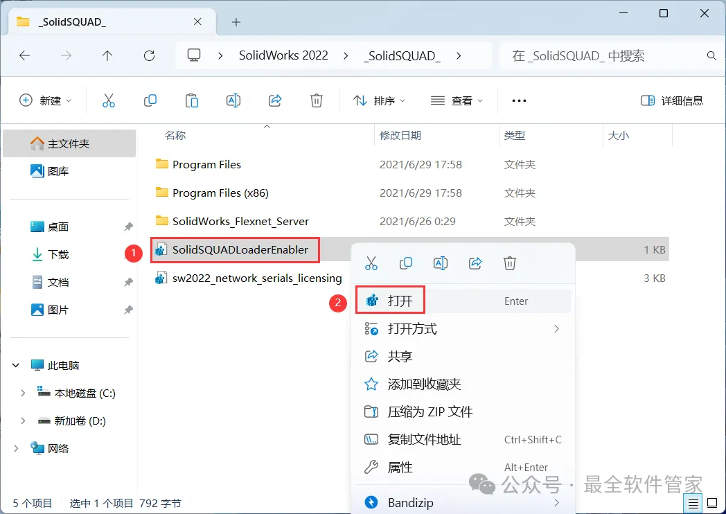 13、回到SolidWorks 2022文件夹,找到【SolidWorks.2022.SP5】文件,再右键点击【装载】