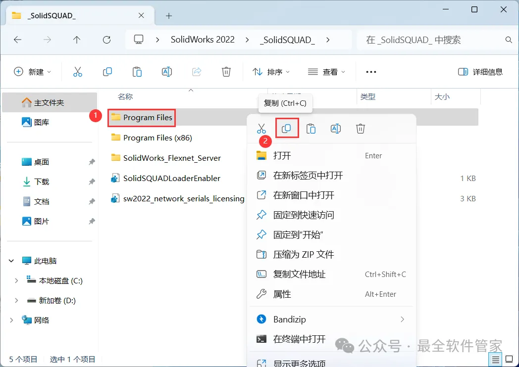 7、找到【SolidWorks_Flexnet_Server】文件夹,右键点击【复制按钮】