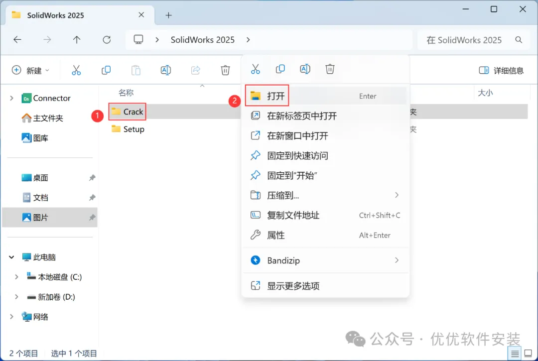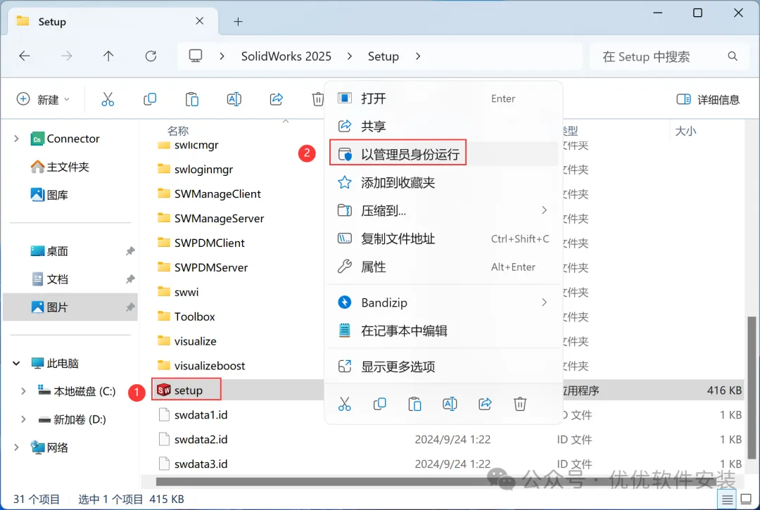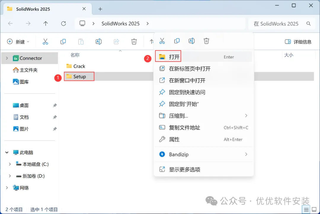 12、回到SolidWorks 2025文件夹,找到【Setup】文件夹,右键【打开】它